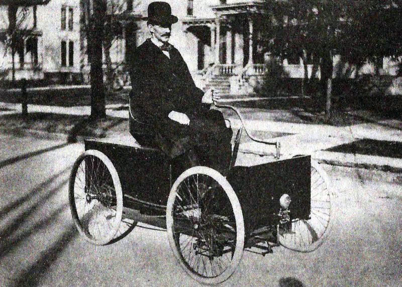 Henry Ford driving his 1896 Quadricycle.