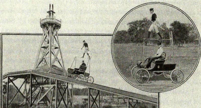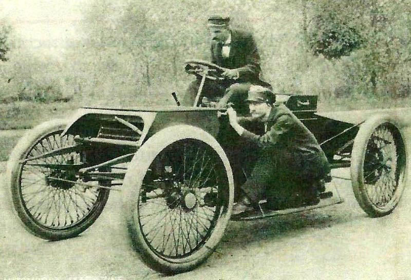 Henry Ford drives his Sweepstakes racer with Spider Huff at Gross Point, 1901