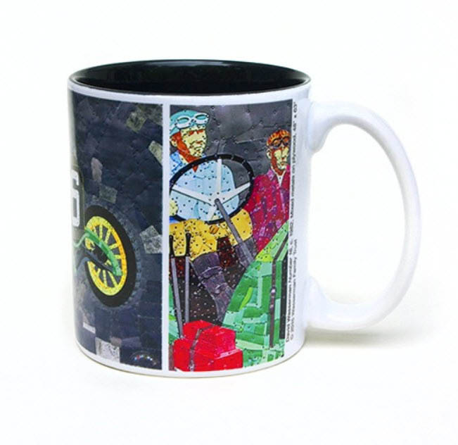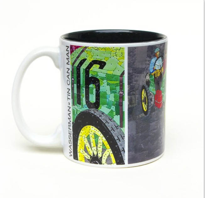 Steve Wasserman has produced a coffee mug featuring a reproduction of his father's amazing tin can art painting of "Old 16" during the 1908 Vanderbilt Cup Race. The mugs can be ordered directly from Steve's website .