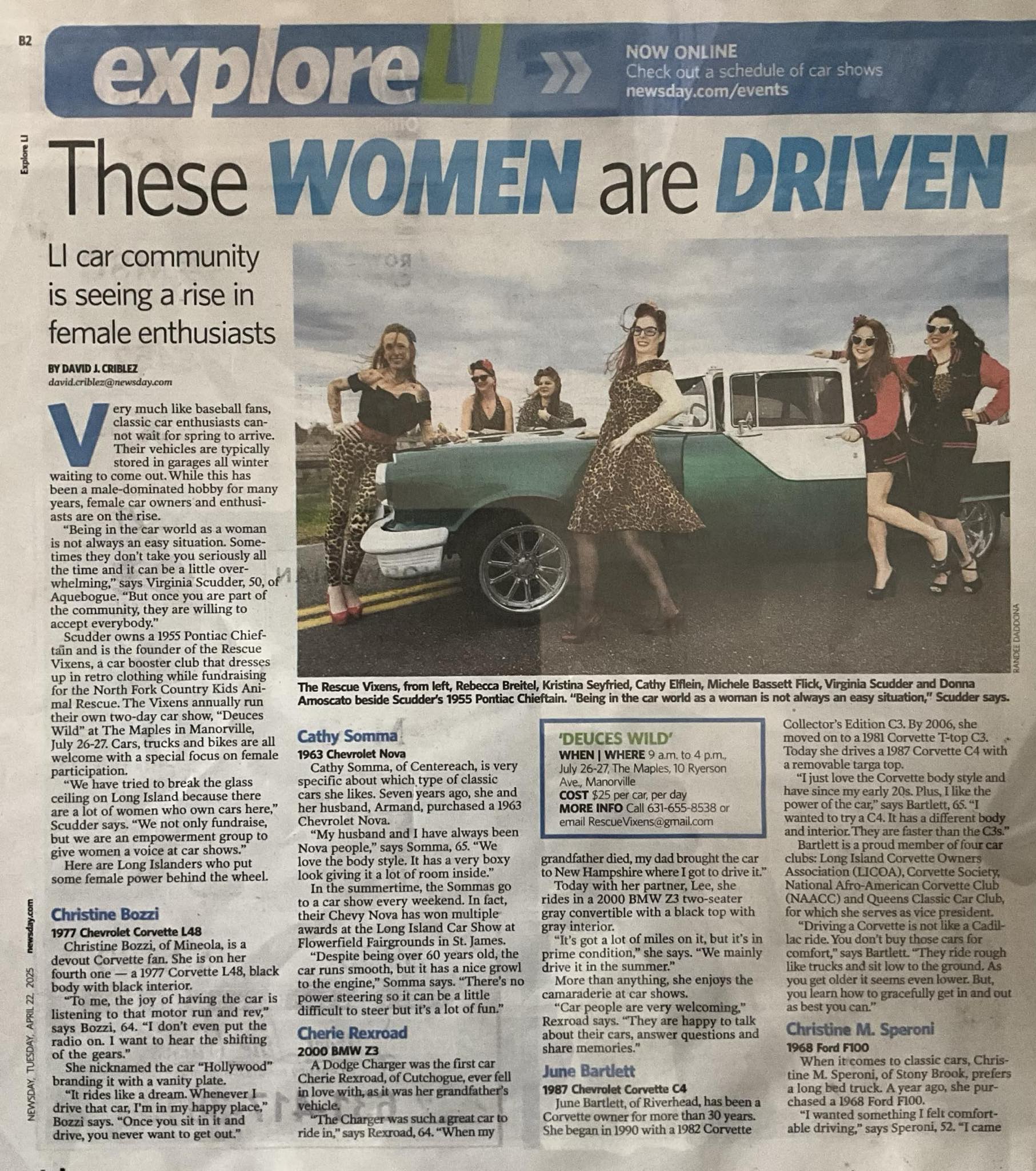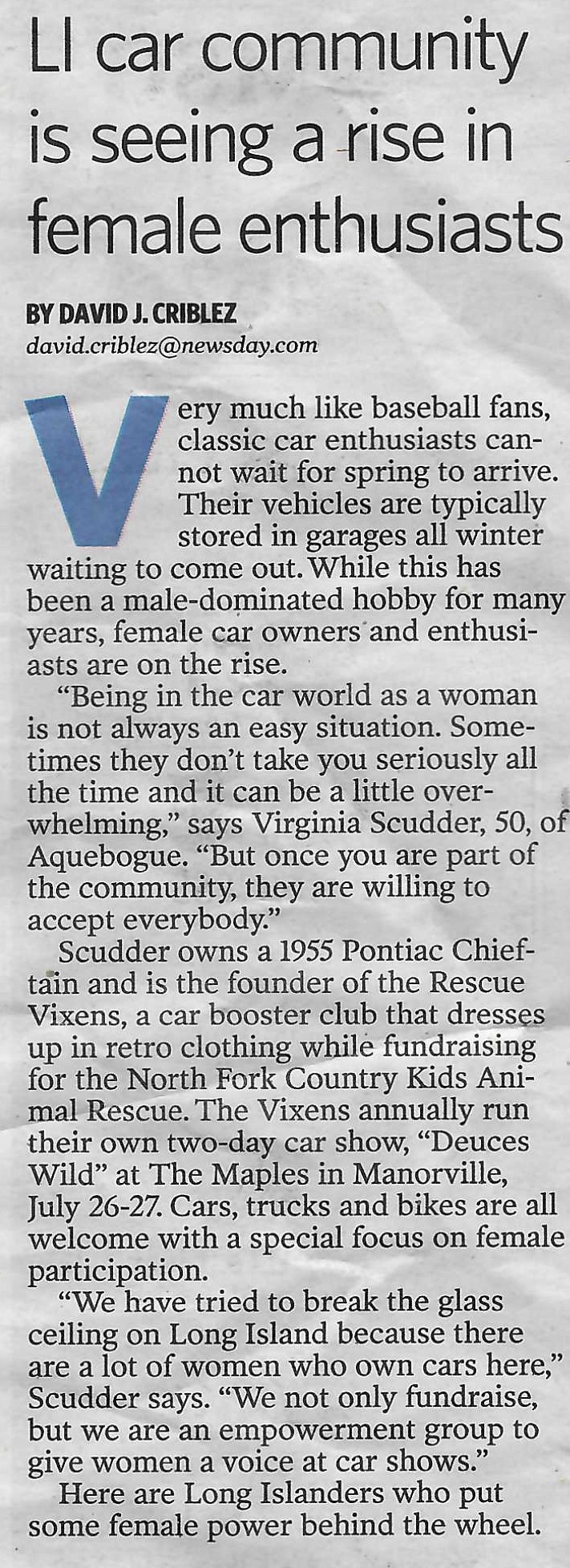 Long Island's Newsday newspaper highlights the 'driven' women of the local car clubs. (On the cover: Virginia Scudder and her 1955 Pontiac Chieftan)