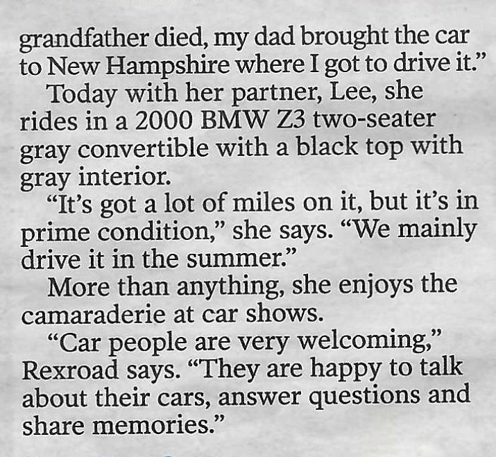 two huge encyclopedias about cars made in the USA. Few could equal her knowledge and enthusiasm. I was long time friends with her and her husband Jim Cox, and a regular contributor to a magazine she was the editor of.