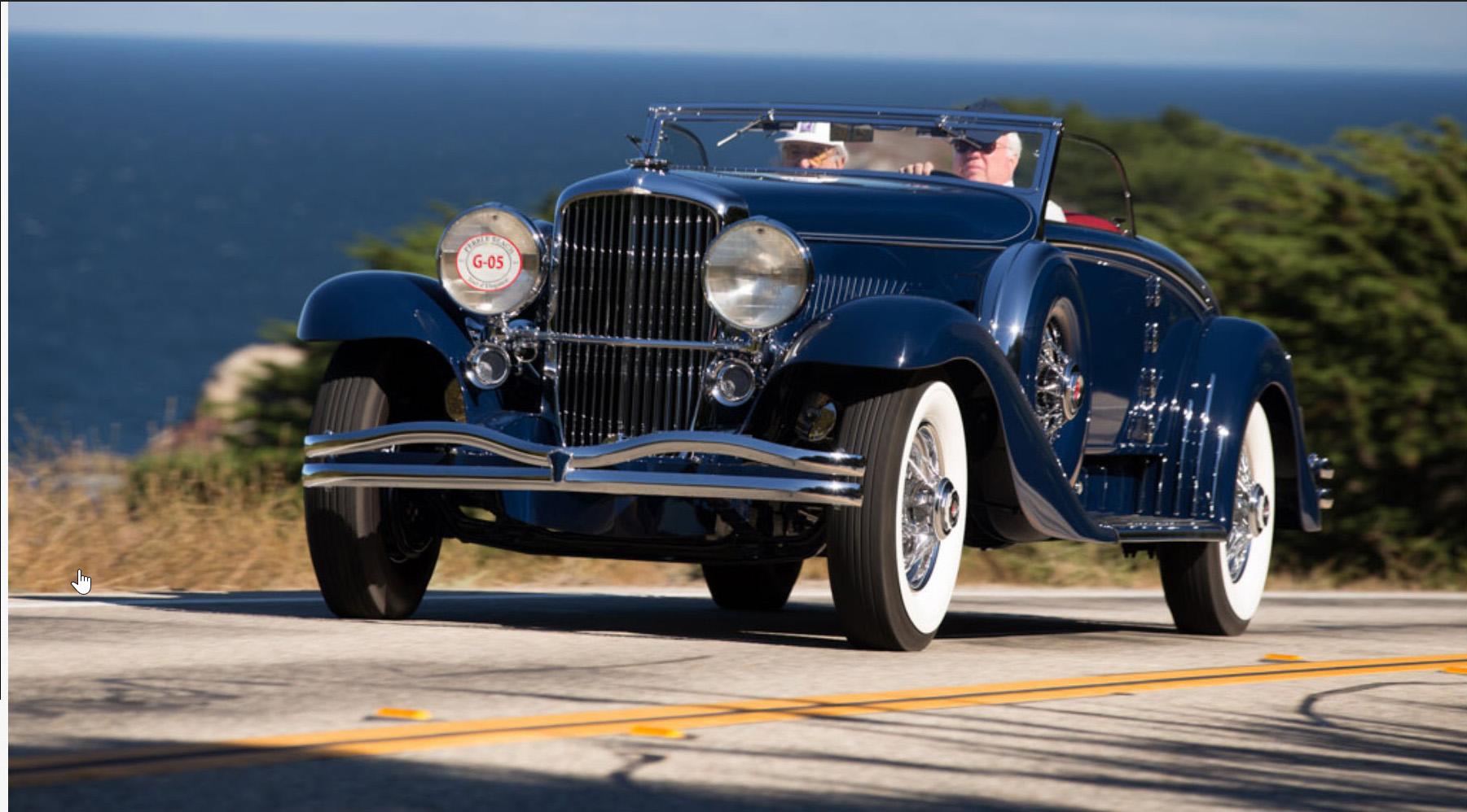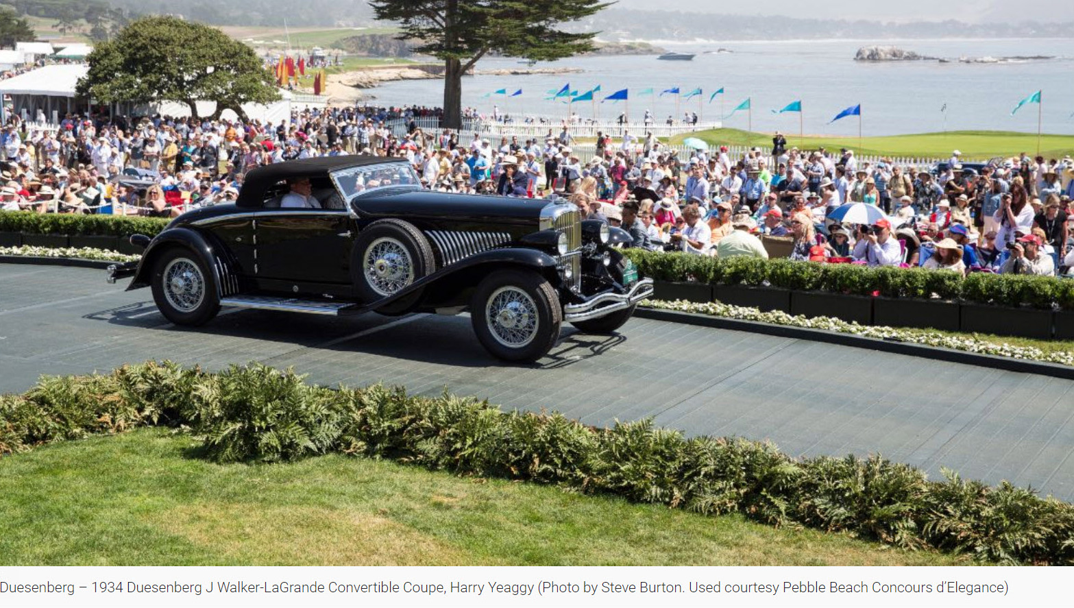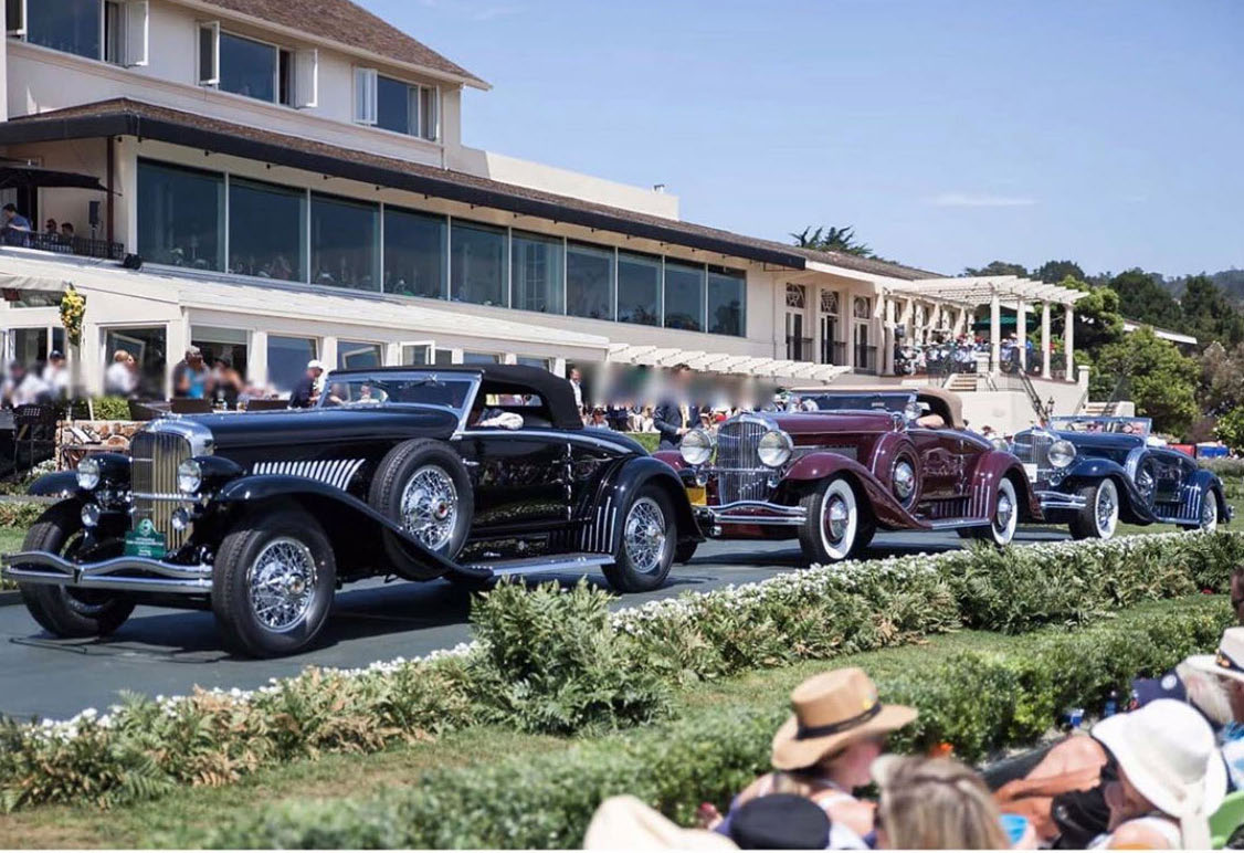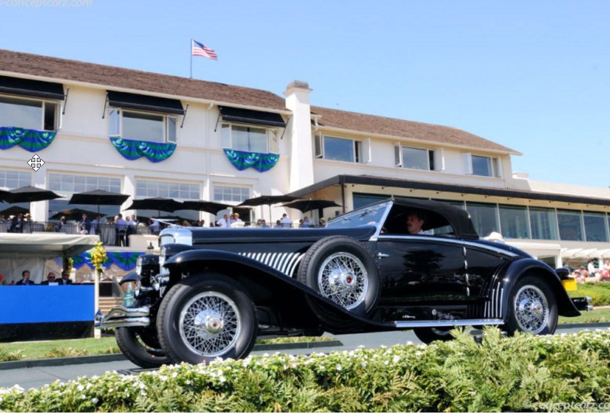 There’s some confusion of which Duesenberg is what? The winning Duesenberg in front of the other two, was all black (with the later looking ‘34 headlight), was shown having a maroon body with the black fenders and headlight and having whitewalls in the Cove Neck garage? When was the photo taken, before or after the Pebble Beach win? At the start of your article there’s a blue Duesenberg posted that was at the third spot on the Pebble Beach runway. Howard, please sort this out.