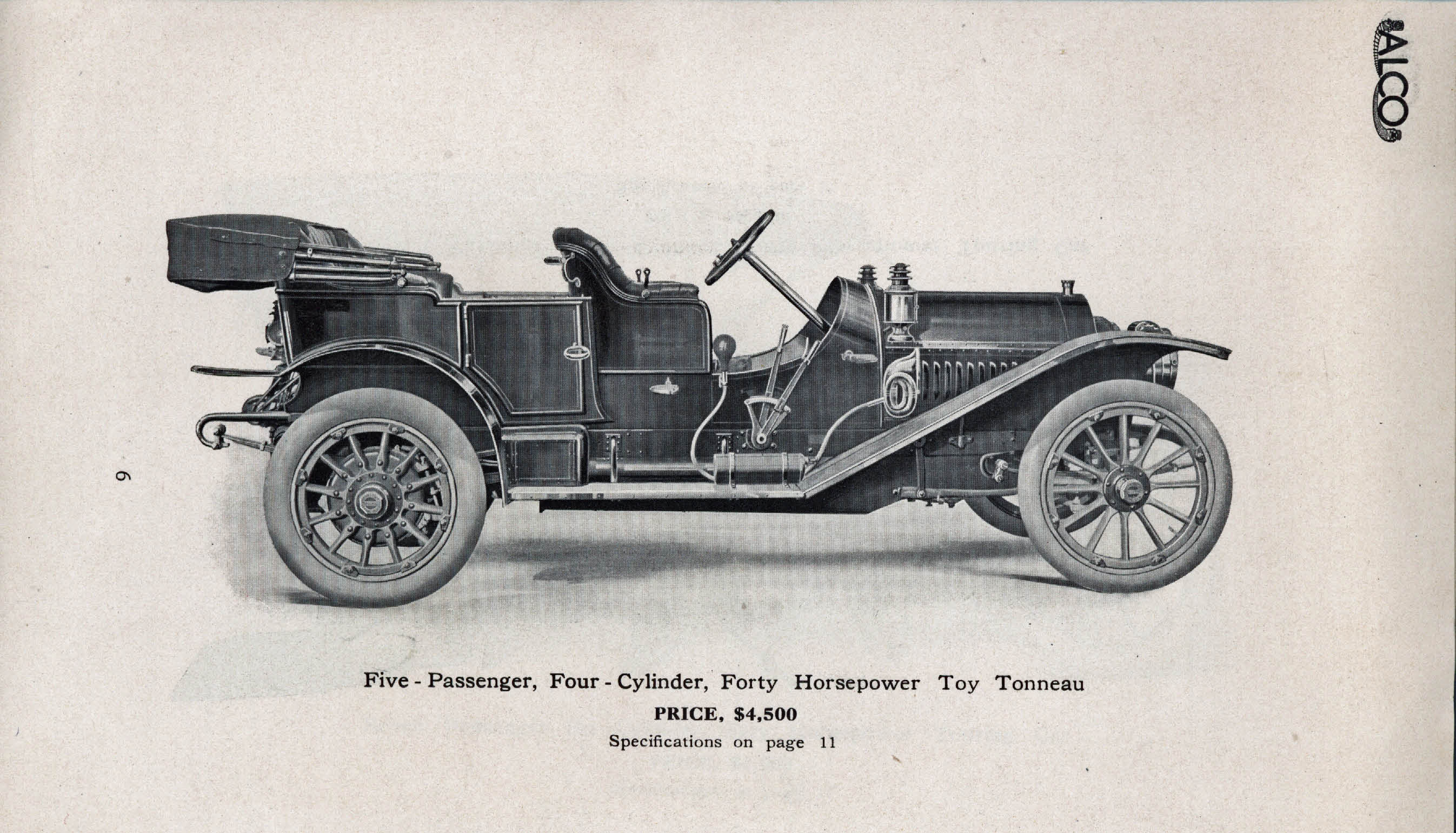 The Toy Tonneau was featured in the 1911 Alco "Advance Information" brochure. The car weighted 3,985 pounds spread across its 126" wheelbase.