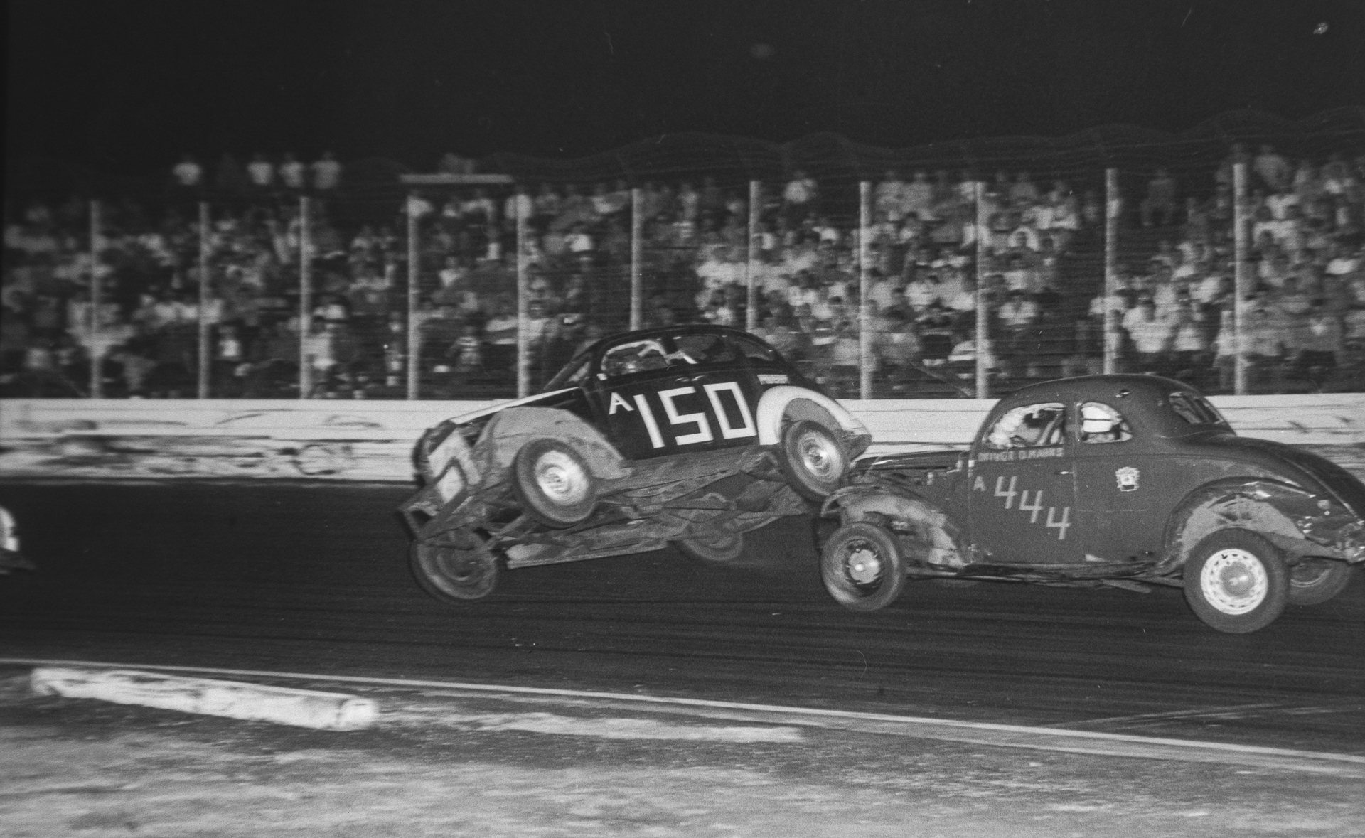 Here's another action shot of the “Crasheroo” demolition derby type racing from Freeport Stadium.
