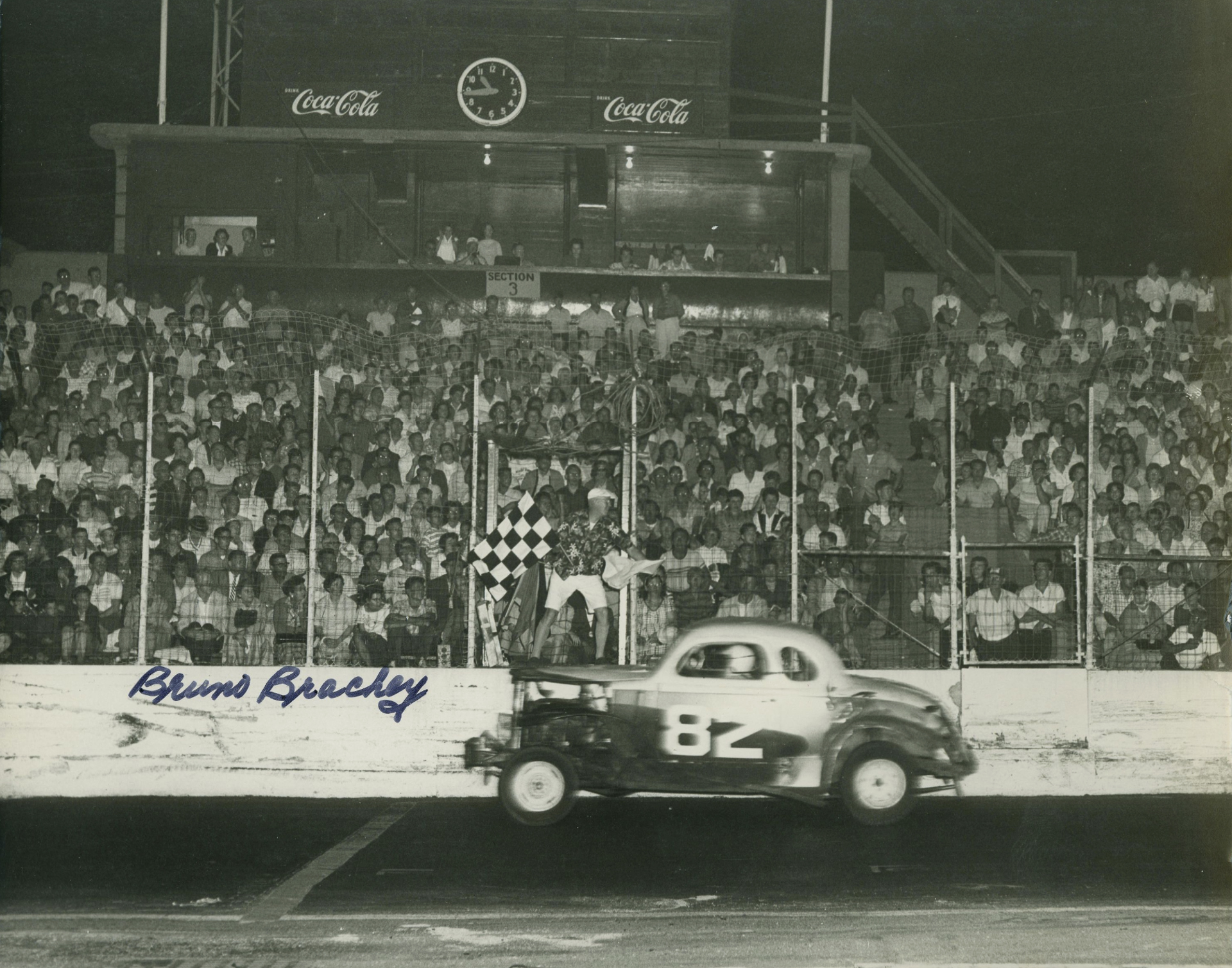 Bruno Bracky a mailman by trade was a constant winner and he must have been a good fighter because he was not a big guy like many of the stock car drivers from local auto shops. My Dad knew Bruno Brackey when we had lived at my Grandparents house in Far Rockaway. The Brackey’s lived on the same Street and Bruno’s Daughter Caroline was in my first grade class So we always rooted for him in the black and white #71 and a few other cars that he drove. The actual owner of the cars he drove lived in East Rockaway down in Bay Park. My Mom knew the wife of the owner of cars but that info is long lost.