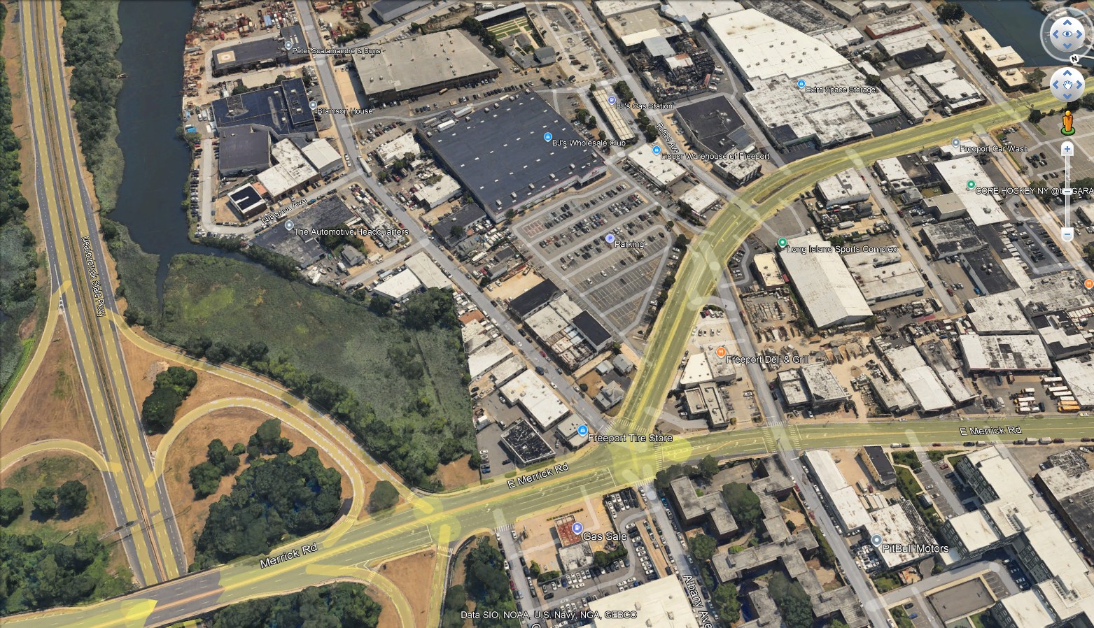 Modern day aerial with the current BJ's retail store on the land that used to be home to Freeport's race track.