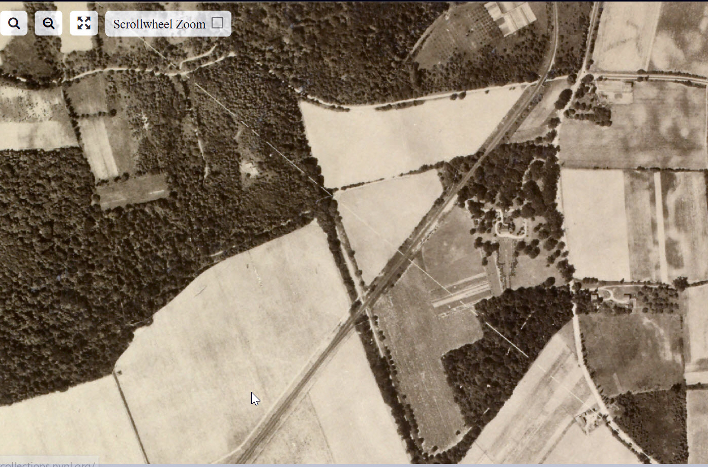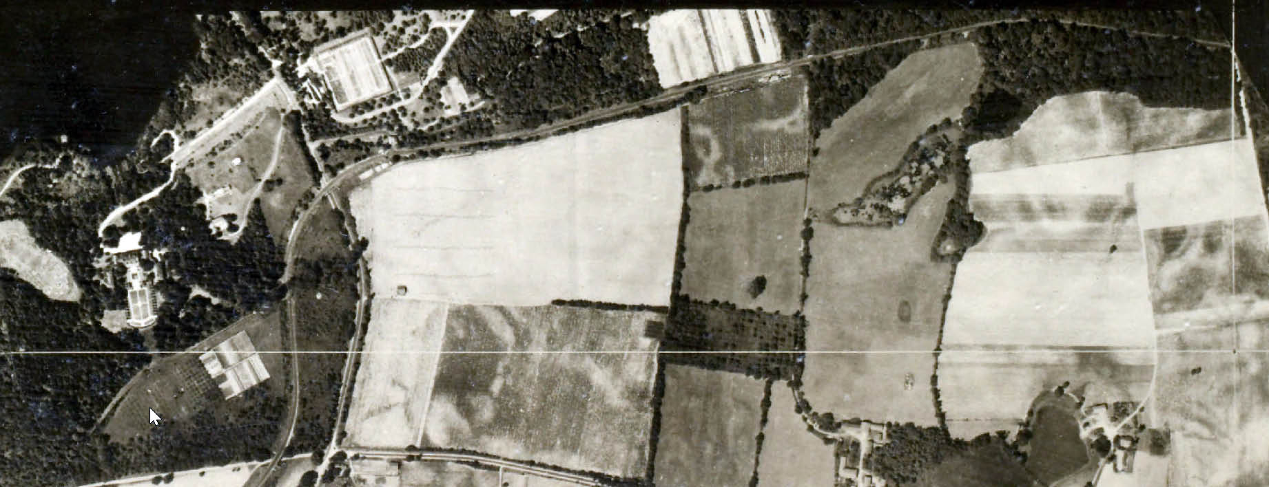 Great find David Stephan! The horizontal line may well be the Hillside lodge. Amazingly, the same approximate location of the future Rocky Hill lodge. The rectangular patch could’ve been a clearing to prevent obstruction of the Motor Parkway entrance sign below. LOVE the LIMP!