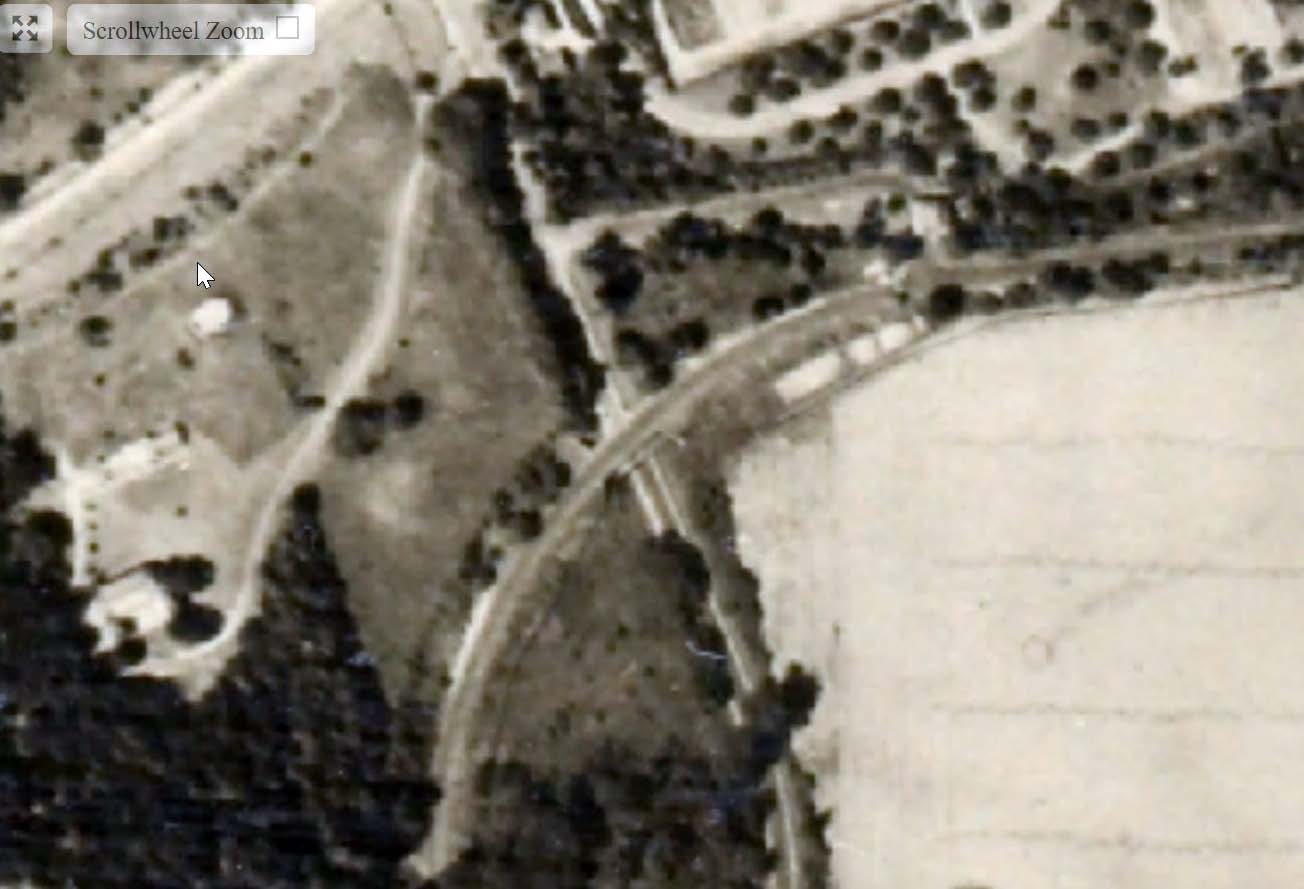 Aerials on the library website are very clear, as good or better than the 1926 aerials of Nassau County LRV. Thinking the narrow white area on the parkway just w/o the farmway bridge is a temporary toll/kiosk, still enough room on each side for cars. Makes sense where it’s located ( before Rocky Hill Rd ). If a toll wasn’t collected here, they were sure to be stopped at the Great Neck Lodge. The area circled just w/o Rocky Hill Rd I’m not sure, maybe a ‘footprint’ showing the future extension of the LIMP : )