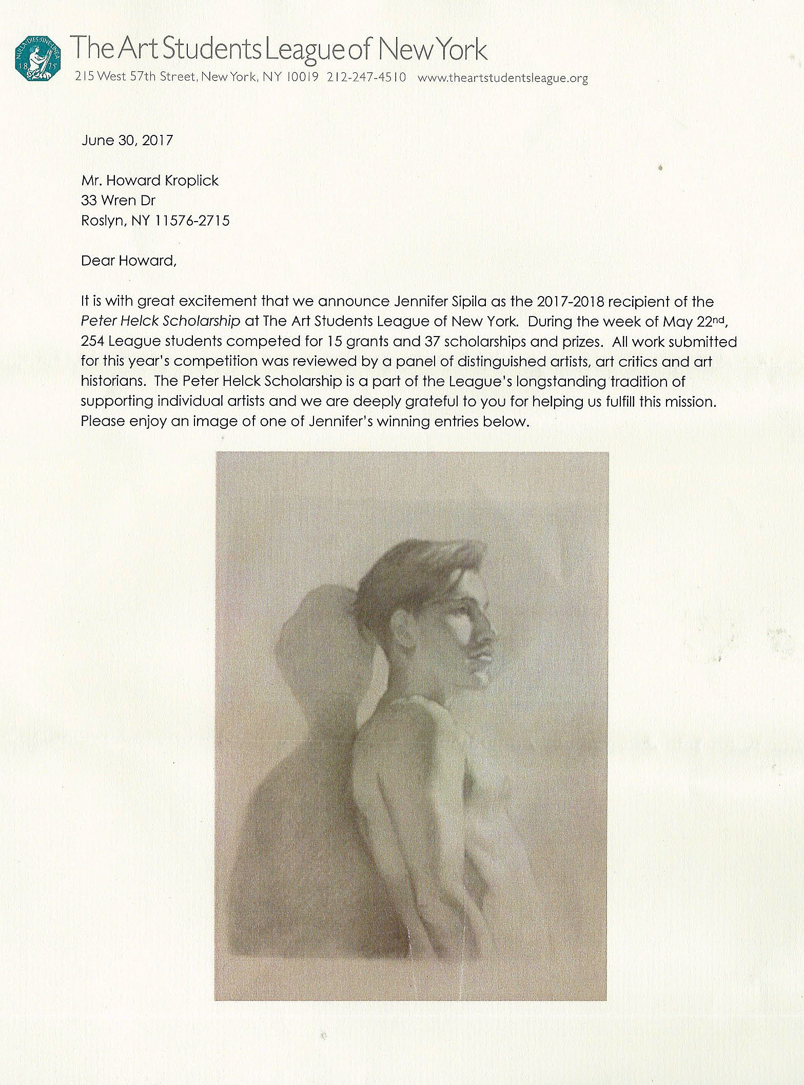 Congratulations to Jennifer Siplia as the 2017-2018 recipient of the Peter Helck Scholarship at the Art Students League of New York.