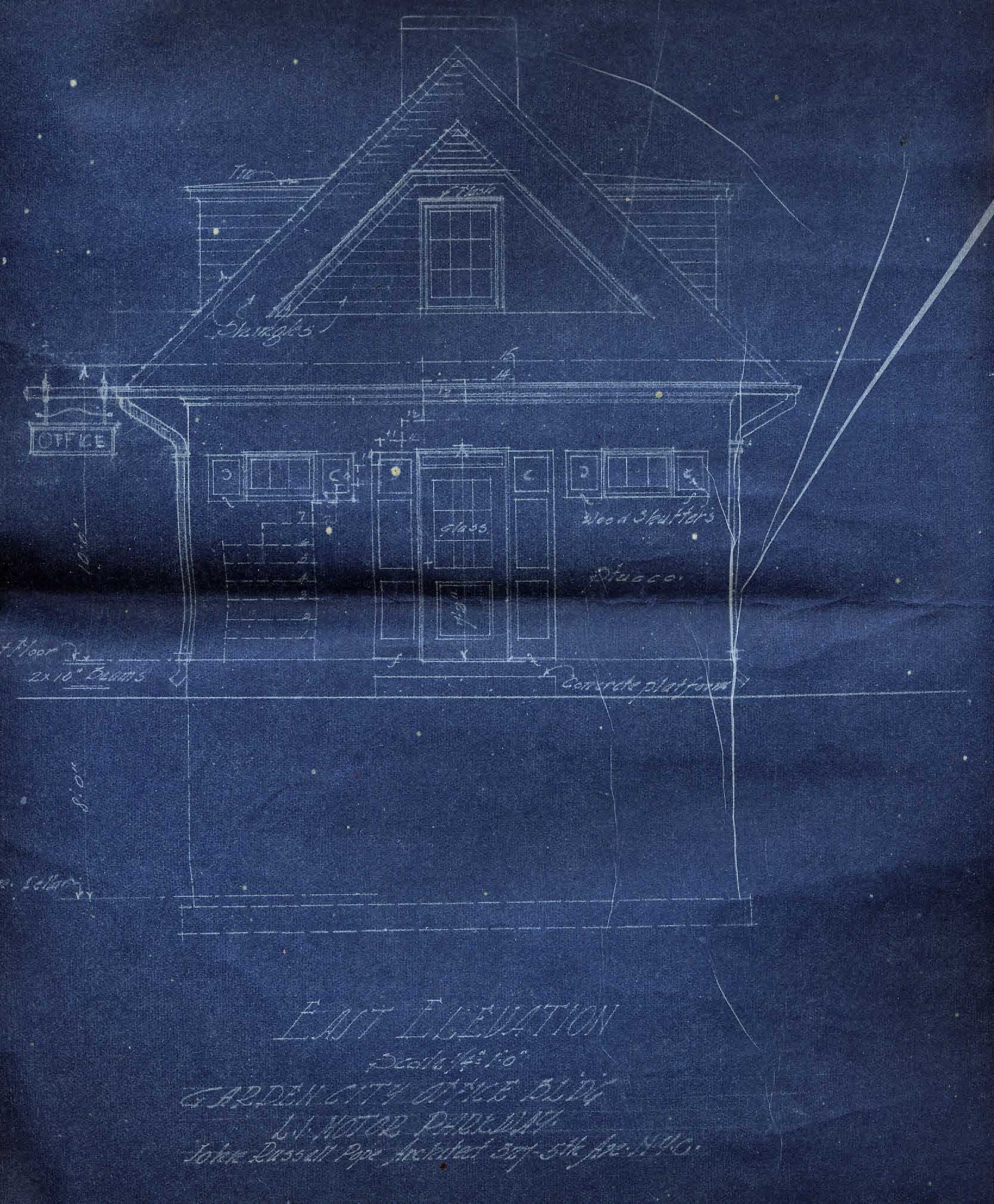 William K. Vanderbilt Jr's favorite architect for the Motor Parkway was John Russell Pope, who designed the first six toll lodges and the Petit Trianon Inn. Pope's last Motor Parkway commission was to design a Garden City office building in 1912 to be built adjacent to the Garden City Lodge.