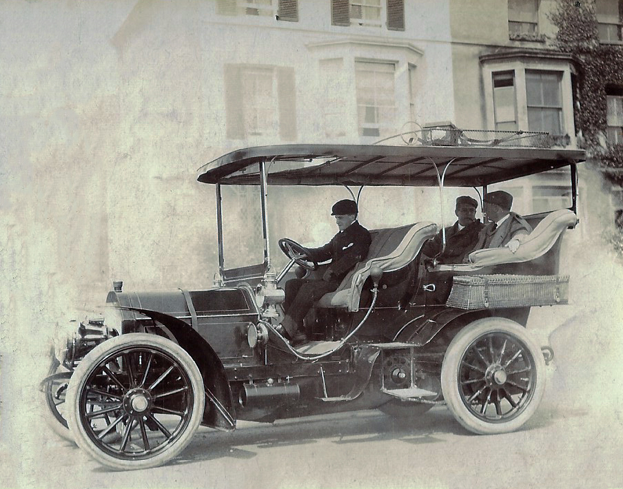 Al Poole is the driver of this 60 HP Mercedes Vedrine (Paris) in April 1904 in Sandwich, England. The automobile was owned Eben McBurney Byers of Pittsburgh, Pennsylvania.