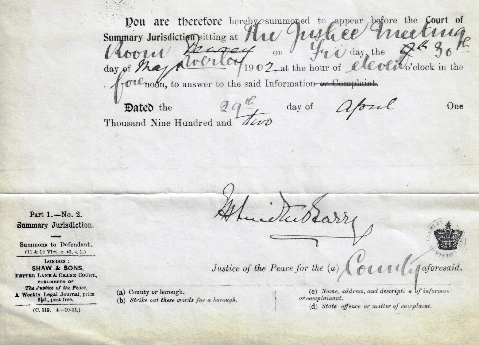 The Locomotives on Highway Act of 1986 defined light locomotives as being under 3 tons and established a speed limit of 14 mph, however local Government Boards could reduce it to 12 mph. Poole was to appear on May 30, 1902 at 11 am.