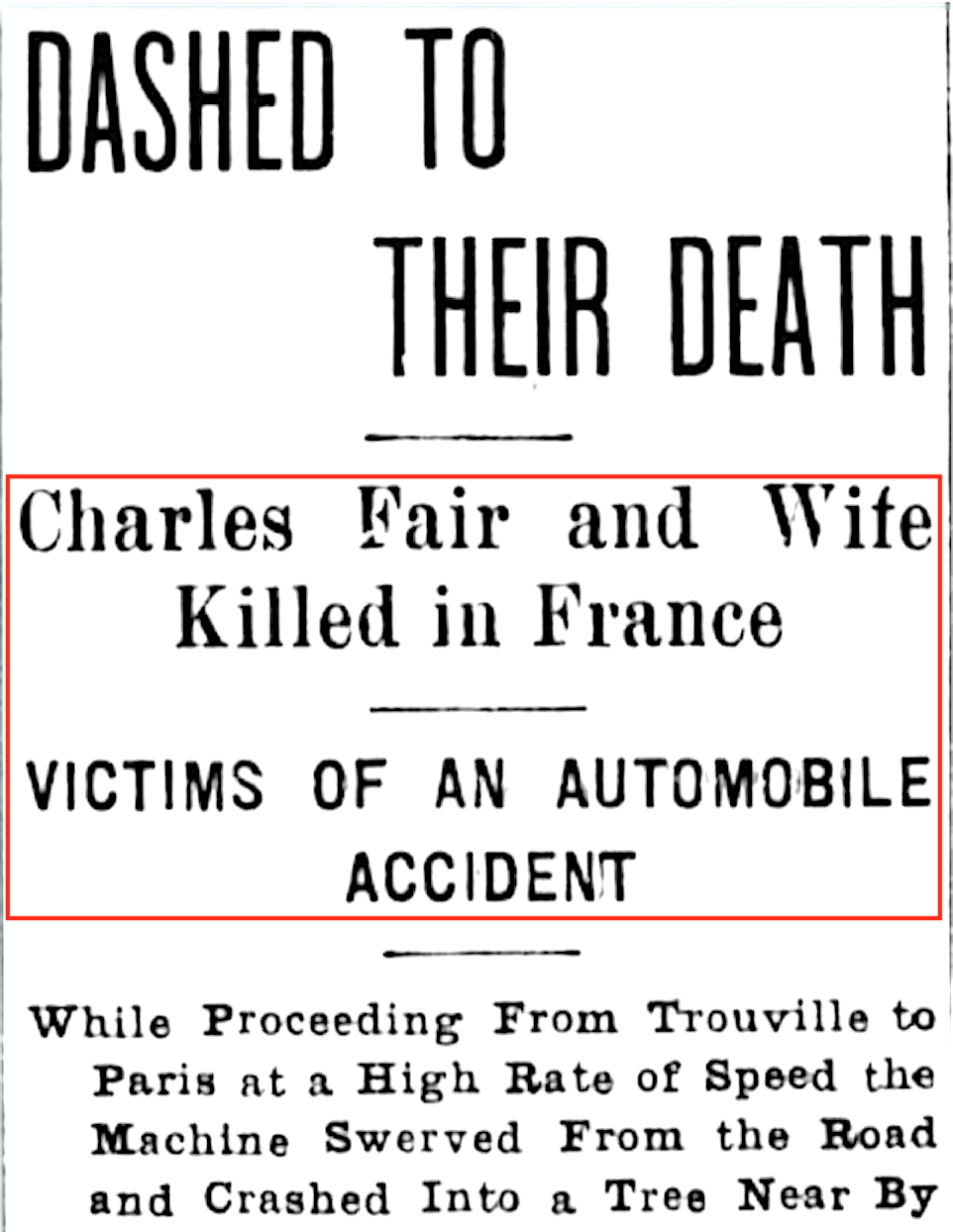 Reporting on the Death of Mr. & Mrs. Charles Fair