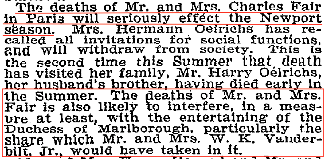 The couple's death was reportedly going to impact the social scene.  (The New York Times, Aug. 15, 1902)