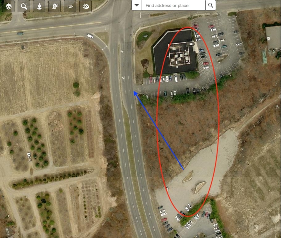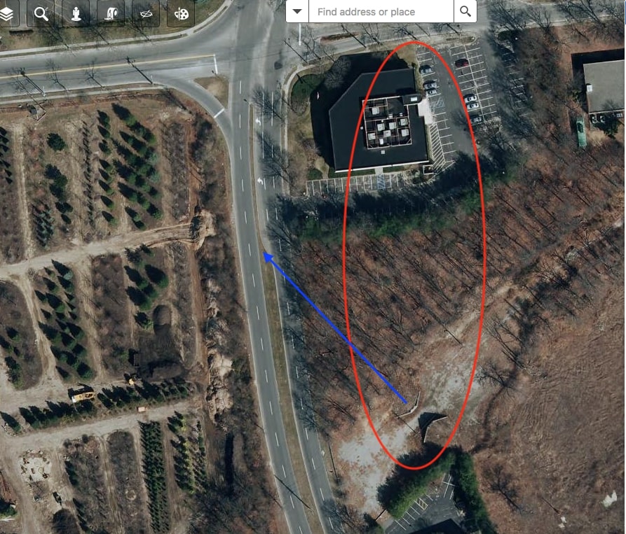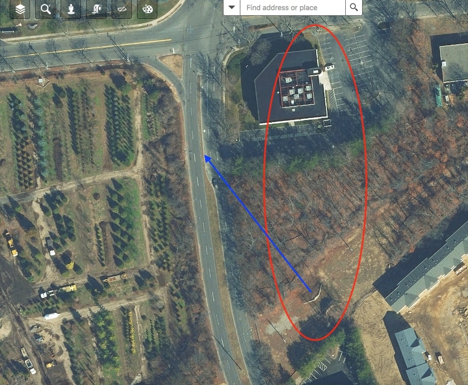 And here’s the 1984 aerial, and a current road map showing the location as a - School/Historic? There’s been the white office building there at least since 1994. Sure a few businesses operate within the building. Don’t think school administration offices operate within?