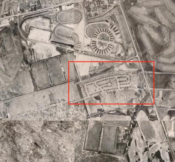 Roosevelt Raceway for harness racing can be seen in the middle of the photo with the original Vanderbilt Cup Race grandstands still being utilized. Circa 1950.(Courtesy of Lee Chambers)