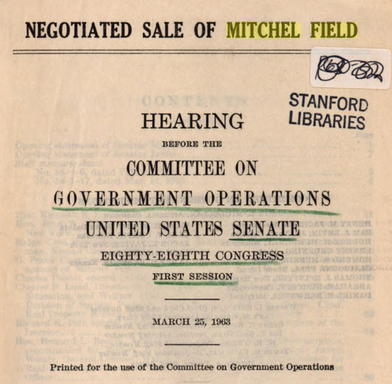 A follow-up post will provide additional details pertaining to the use of Mitchel Field property disposed of by the War Dept. in 1962/63. (Courtesy Stanford University)