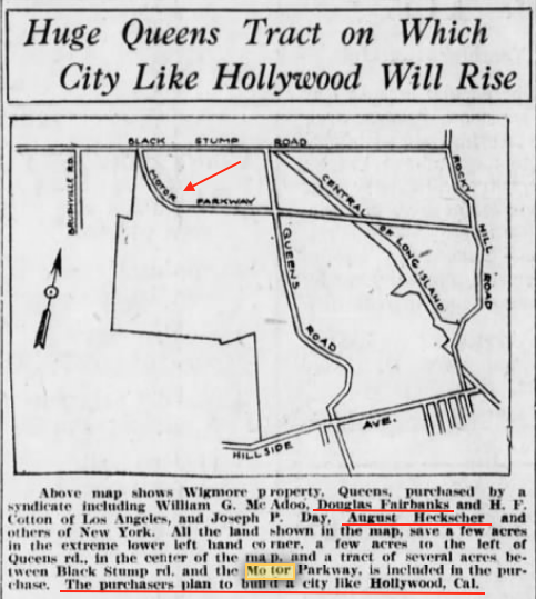 Big plans for this area in Queens as noted in this Brooklyn Daily Eagle map of Nov., 1925. Had some strong backers but the plans didn't seem to materialize.