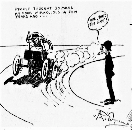 First is the above depiction of the speed attained at races during that time period by J. Campbell Cory.