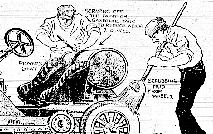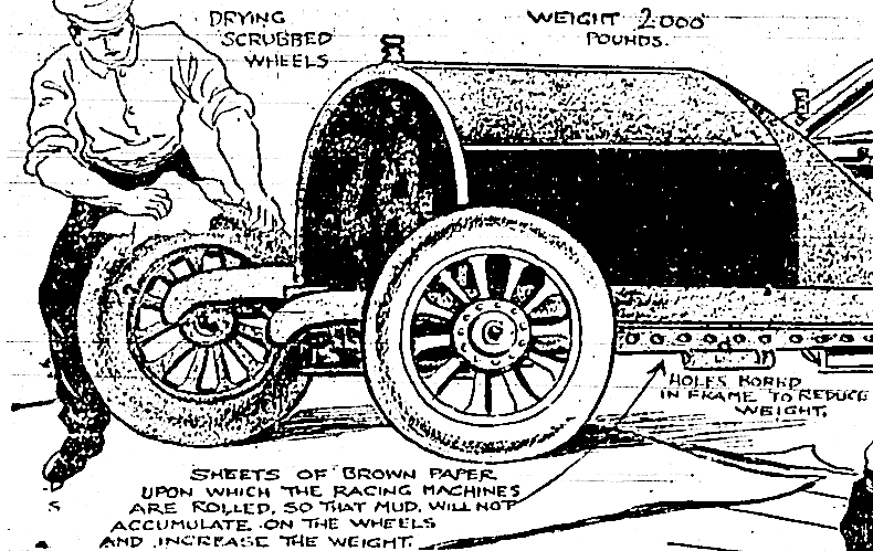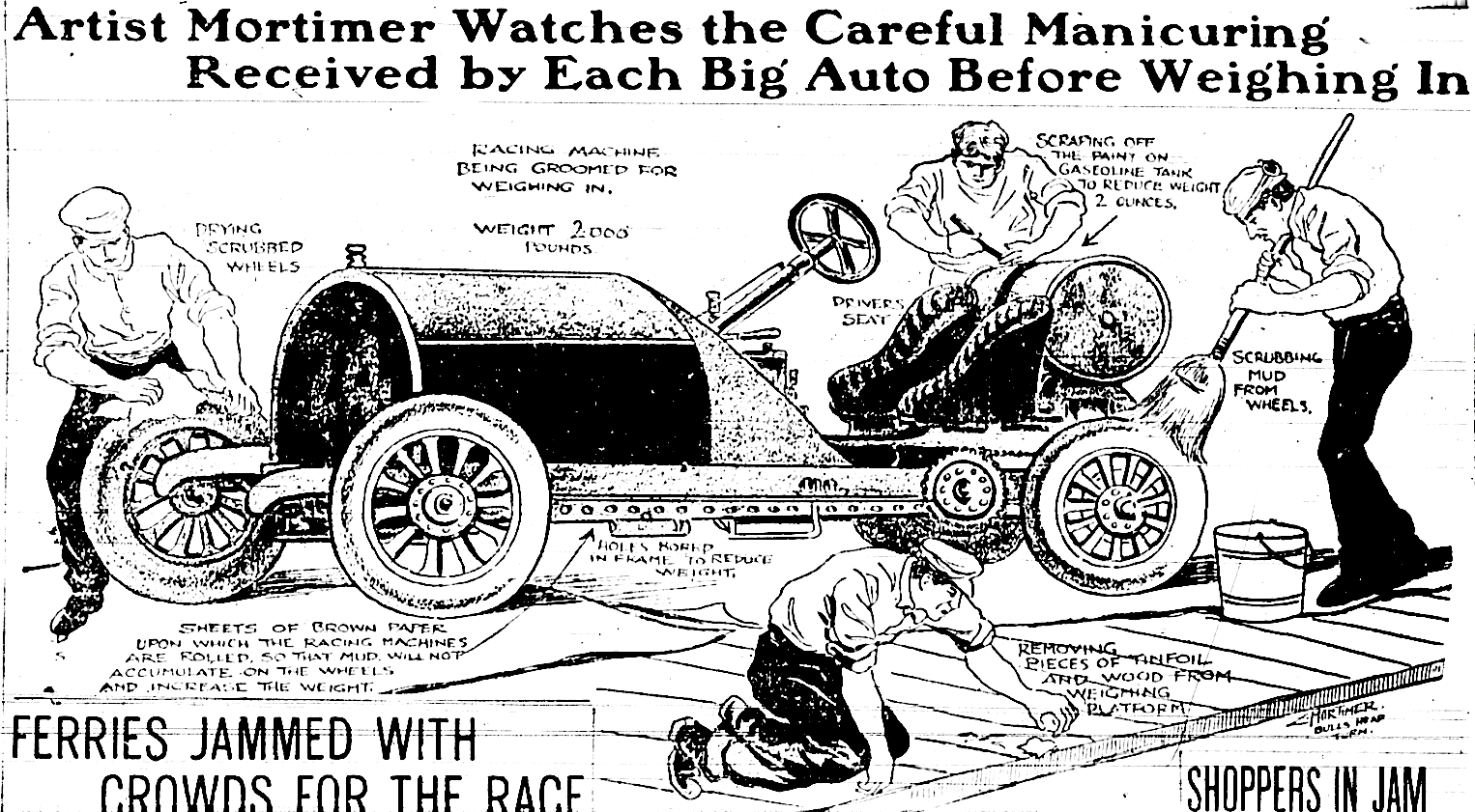 This is how "The Evening World" staff artist Mortimer viewed this pre-race necessity.