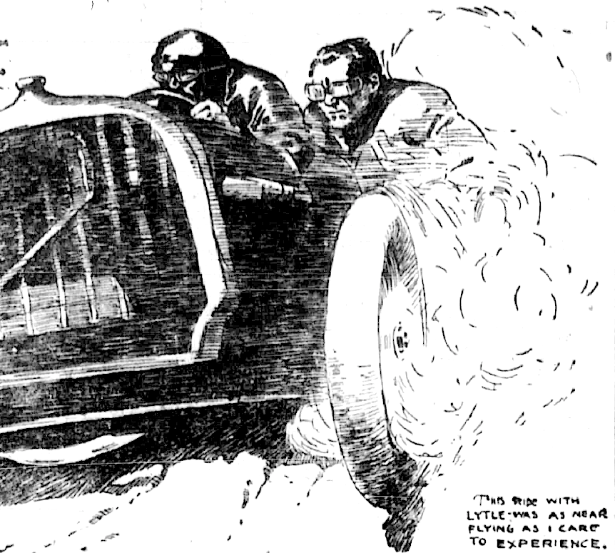 Artist Robert Edgren captured the thrill of the 1906 Vanderbilt Cup Race by accompanying driver Herb Lytle in a practice run.