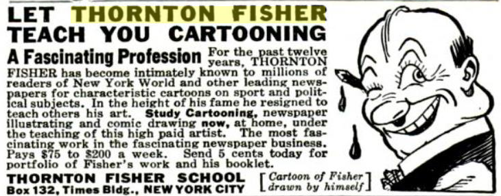 Thornton Fisher (1888-1975) was a noted sports journalist and cartoonist for several publications in the early to mid-1900s and even operated a short-lived cartooning school. (wnyc.org)
