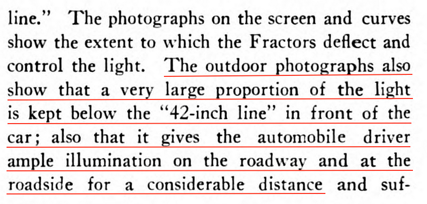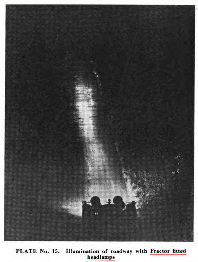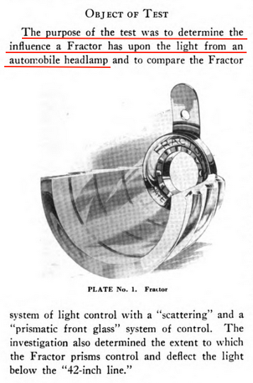 A fractor (e.g,. deflector?) was used on the headlights in comparison to other forms of light dispersion.