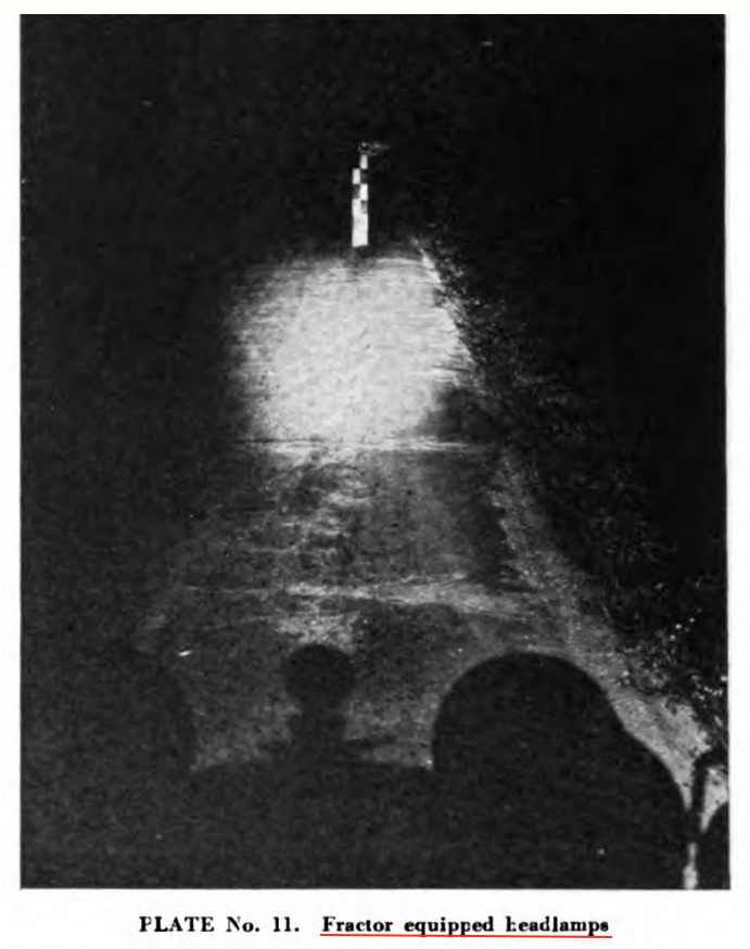 This test involved the impact of different types of headlights on visibility. (Motor Travel, October 1917)