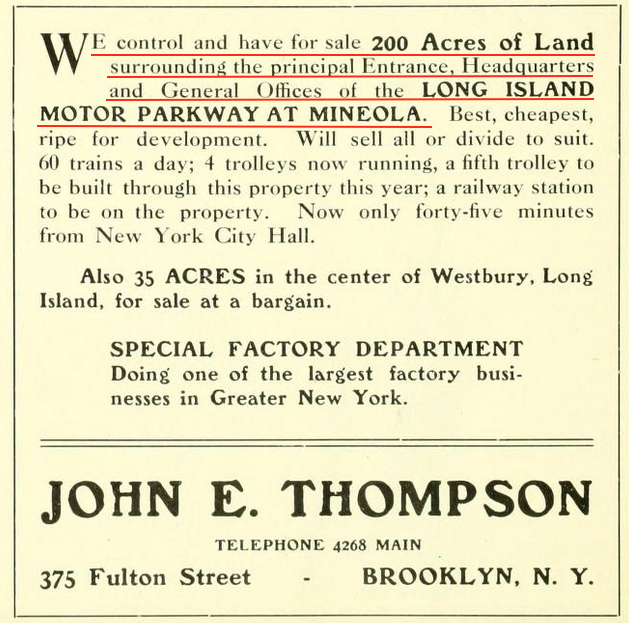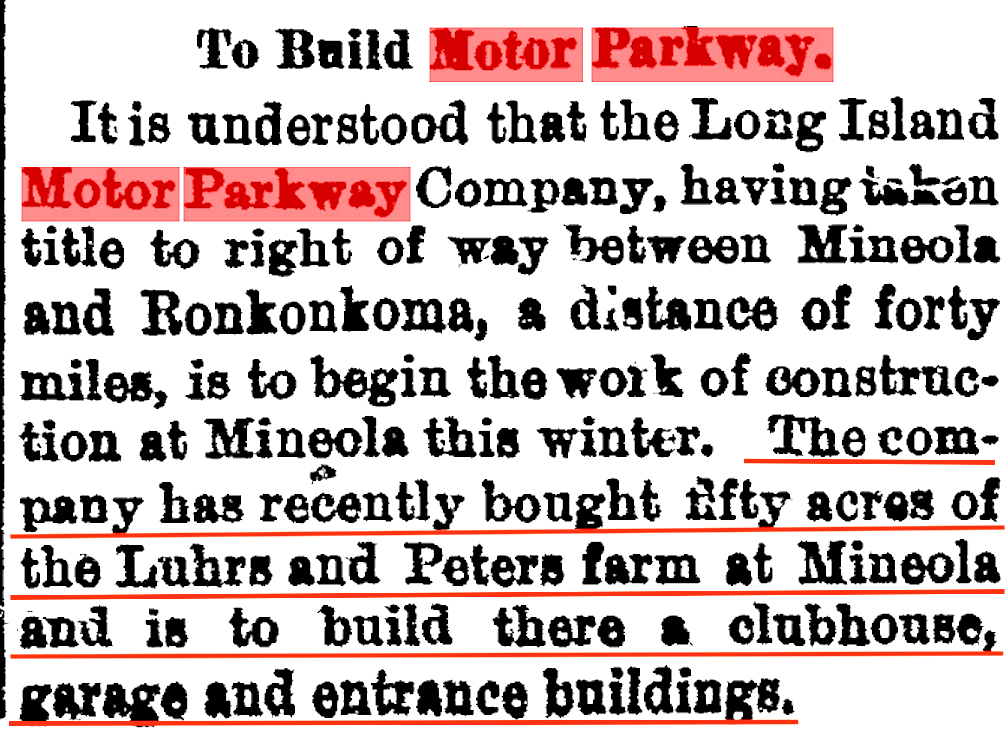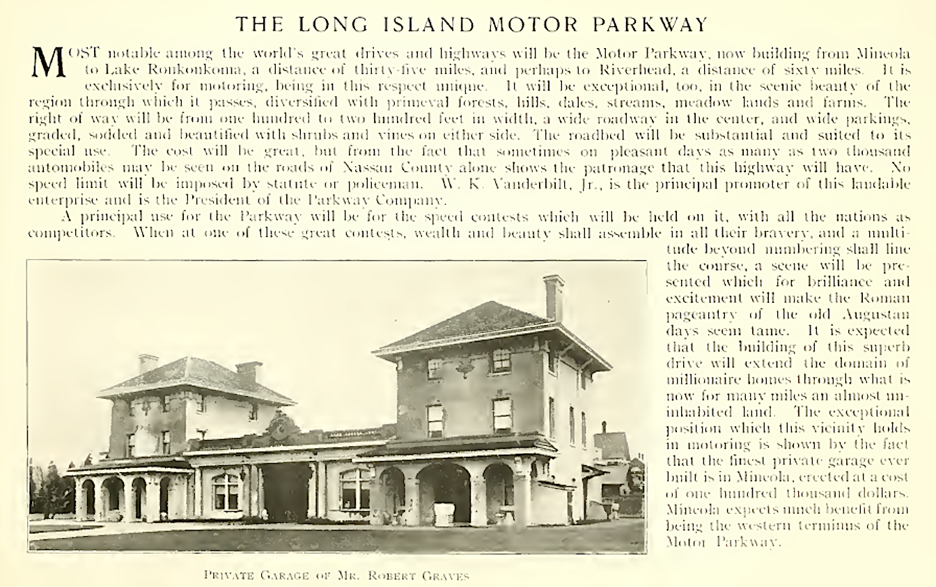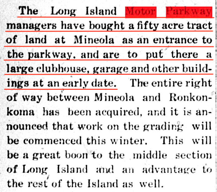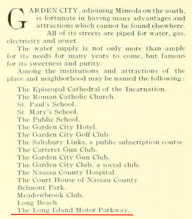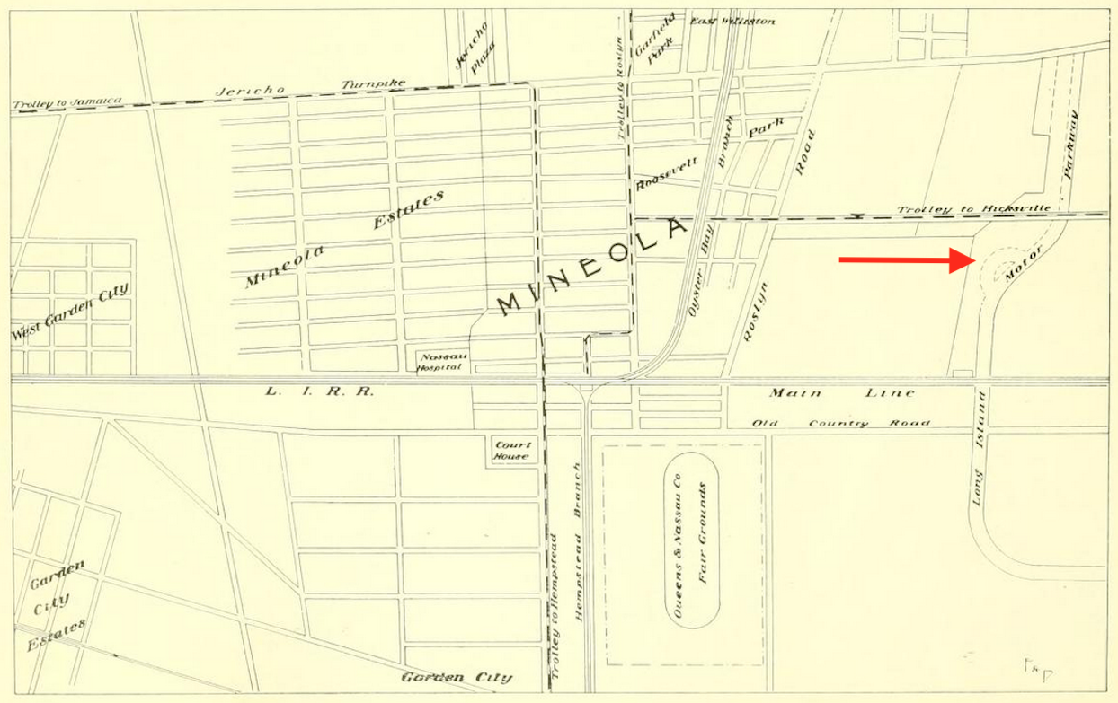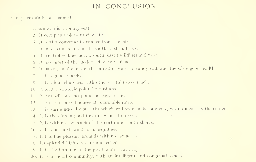 All said and done #19 on the list of Mineola's advantantages was "it is the terminus of the great (bold added) Motor Parkway".