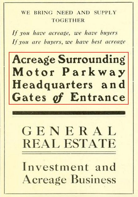 Real Estate surrounding the Motor Parkway was being promoted.