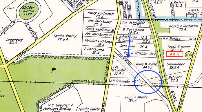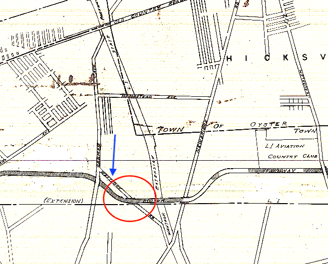 So the stretch of the Motor Parkway from where it turns SE (E of Carman Avenue) to where it turns E again ran parallel to Old Westbury Road, and just south of it. Based on modern maps, it appears that this stretch of Salisbury Park Drive came from Old Westbury Road, and not from the Motor Parkway. Where the Motor Parkway was is now occupied by baseball fields and the Knolls residential community. Or am I off base?