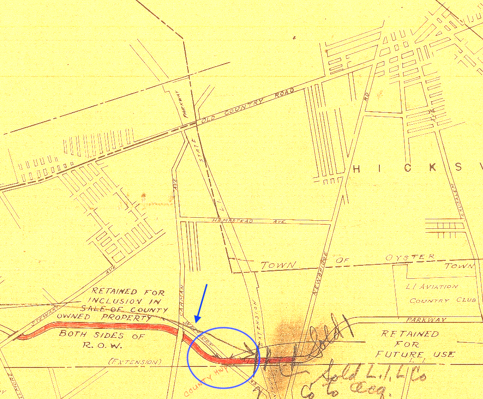 1939: Nassau Conty DPW (NCDPW) map showing area to be included in future sale of county owned property.