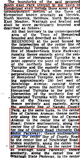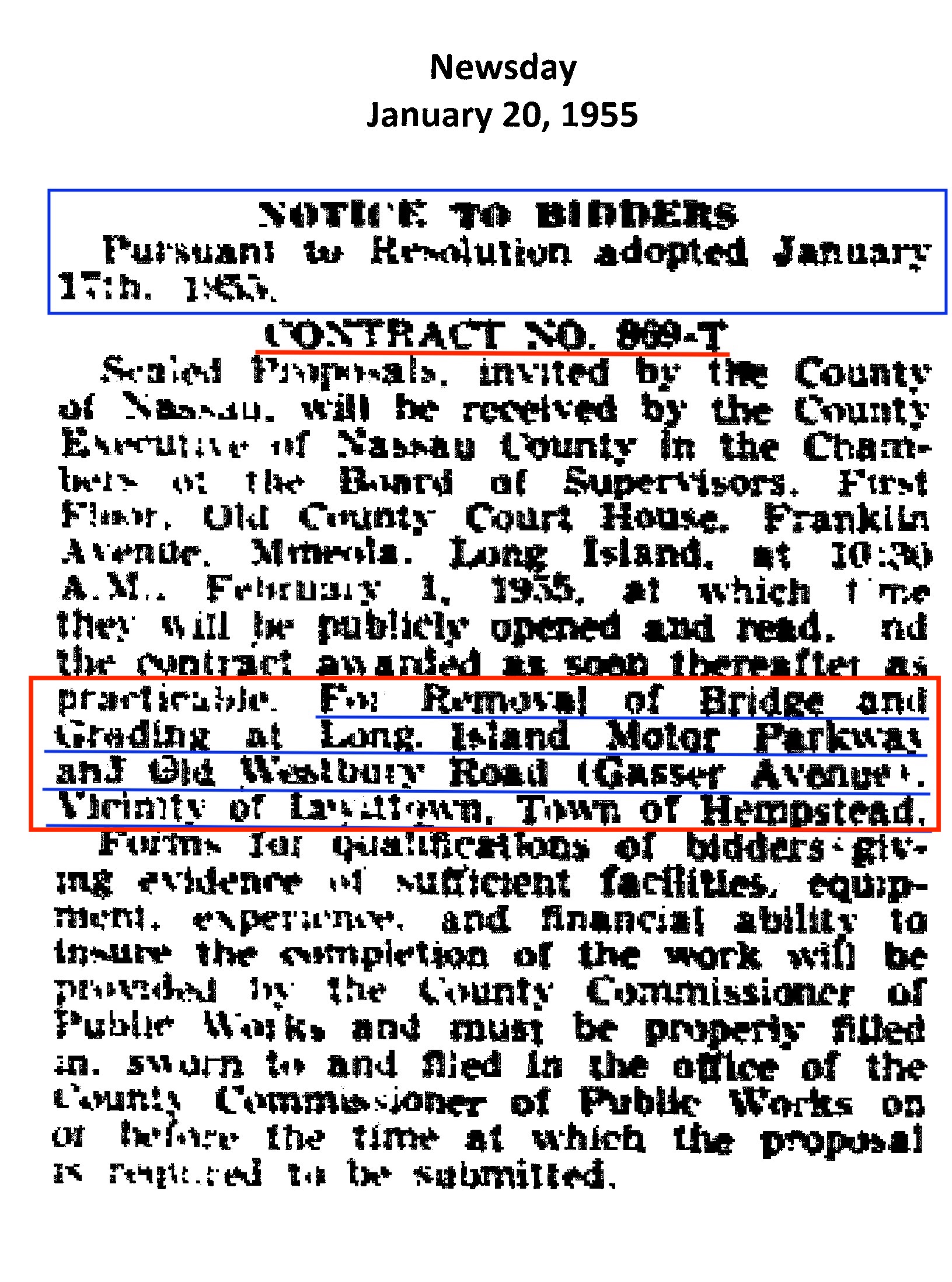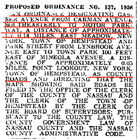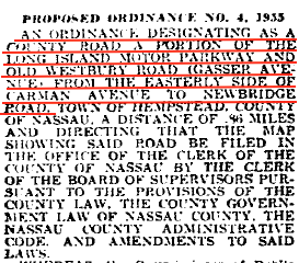 1955: Designating as a county road a part of the Long Island Motor Parkway and Old Westbury Road (Gasser Ave.)