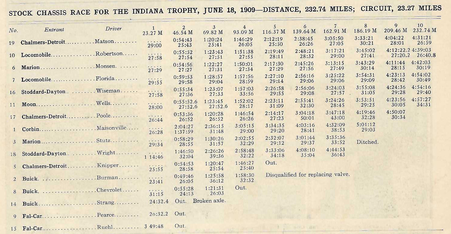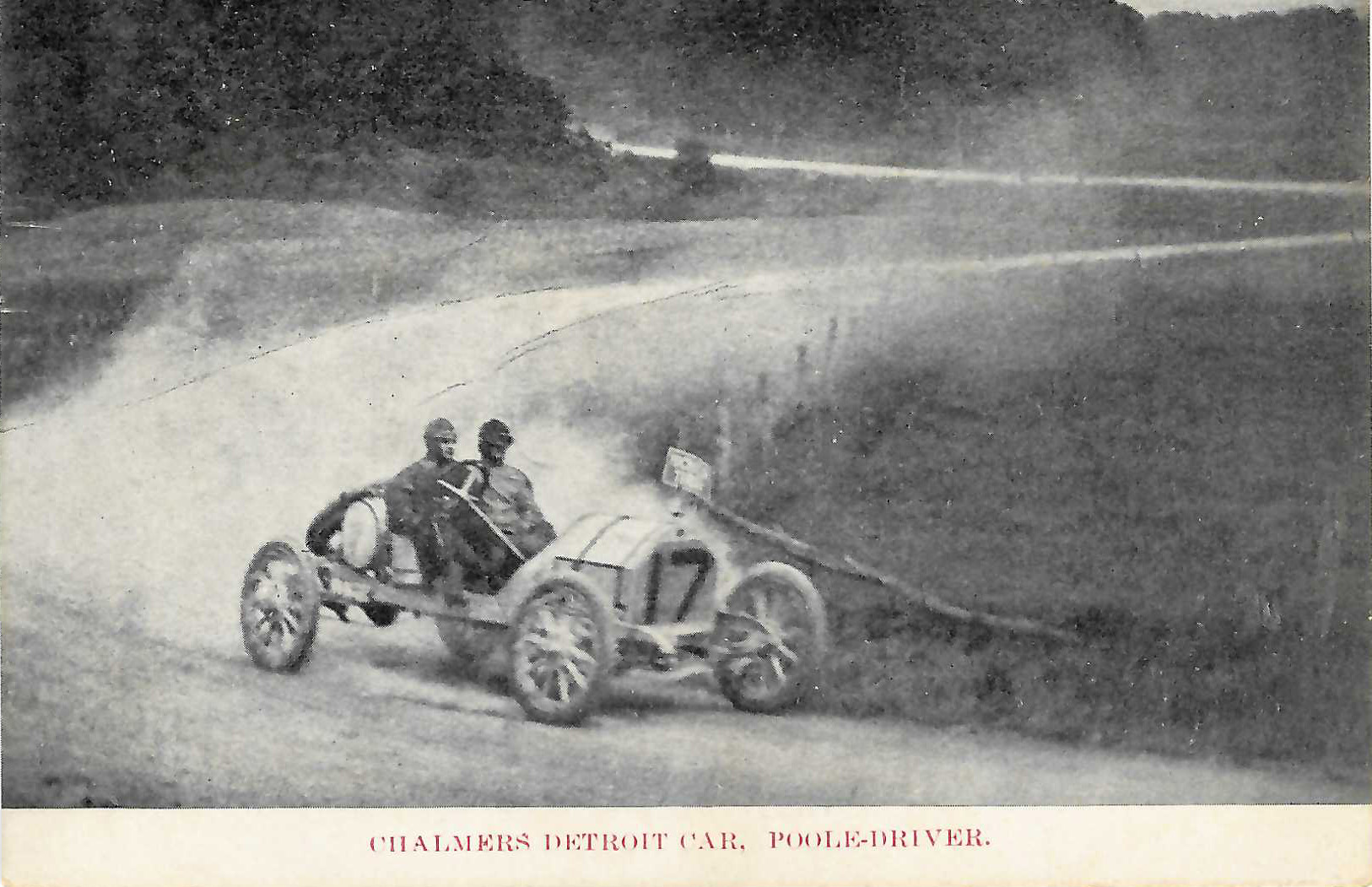 In the lead up race to the 1909 Cobe Cup (Indiana), Al Poole drove #17 Chalmers-Detriot in the Indiana Trophy race the day before (June 18) finishing 7th. George Robertson drove his #10 Locomobile and finshed second, with Glenn Etheridge as mechanician.