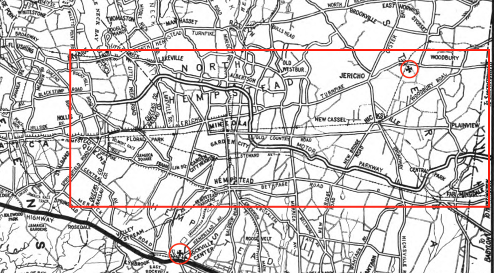 One of my all time favorite photos, Old Country Road and Clinton Ave looking SE at old Roosevelt Air Field. Today, its busiest intersection in Nassau County.