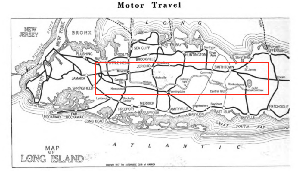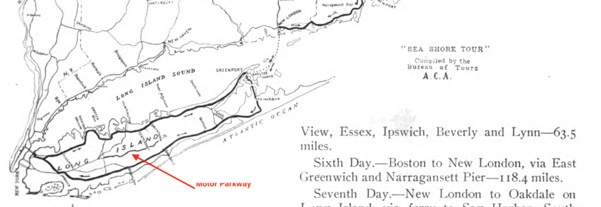 The Motor Parkway was shown as a "Macadam and good road".
