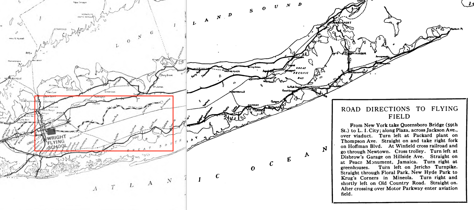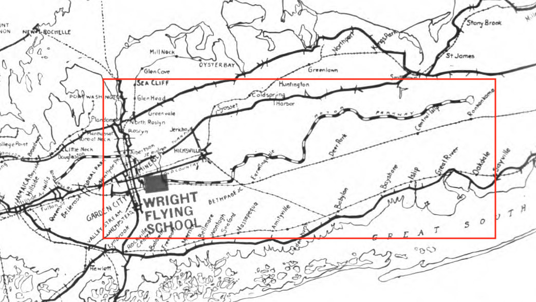 Located near Mineola (East Garden City) The Wright Flying Field and school were situated adjacent to the Motor Parkway. (The Wright Flying School, 1916)