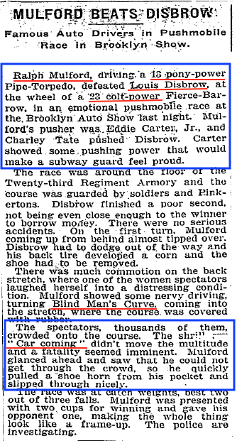 Even Vanderbilt Cup drivers and winners were getting in on the act and causing quite a stir ("Car Coming")! The New York Times, February 25, 1913.