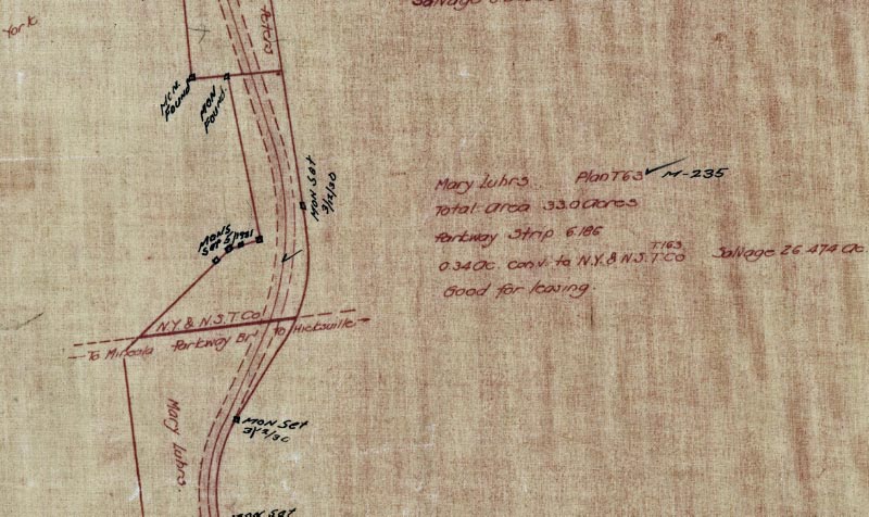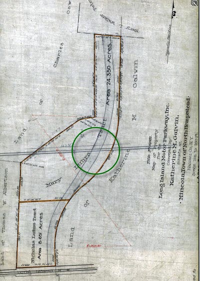 This survey shows the area where the Motor Parkway bridge was built in 1909.