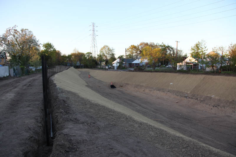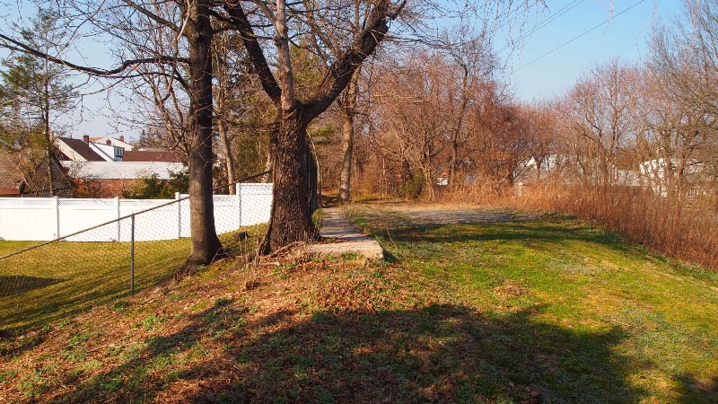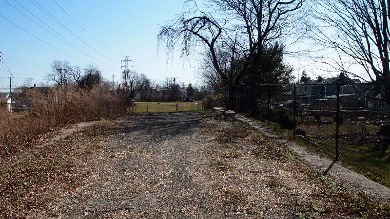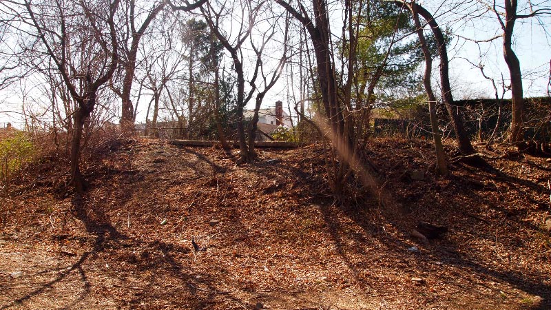 Looking north from Westbury Avenue, a section of the bridge embankment still exists