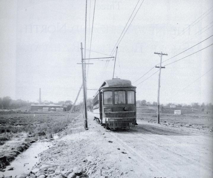 A typical railway car for New York and North Shore Traction Company. The trolley line connected Flushing, Whitestone, Bayside, Great Neck, Manhasset, Port Washington, Roslyn, Mineola, Westbury and Hicksville.