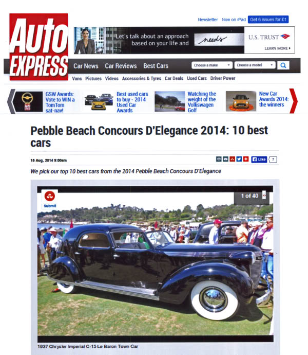 AutoExpress: 10 Best Cars at Pebble Beach Concours d'Elegance 2014