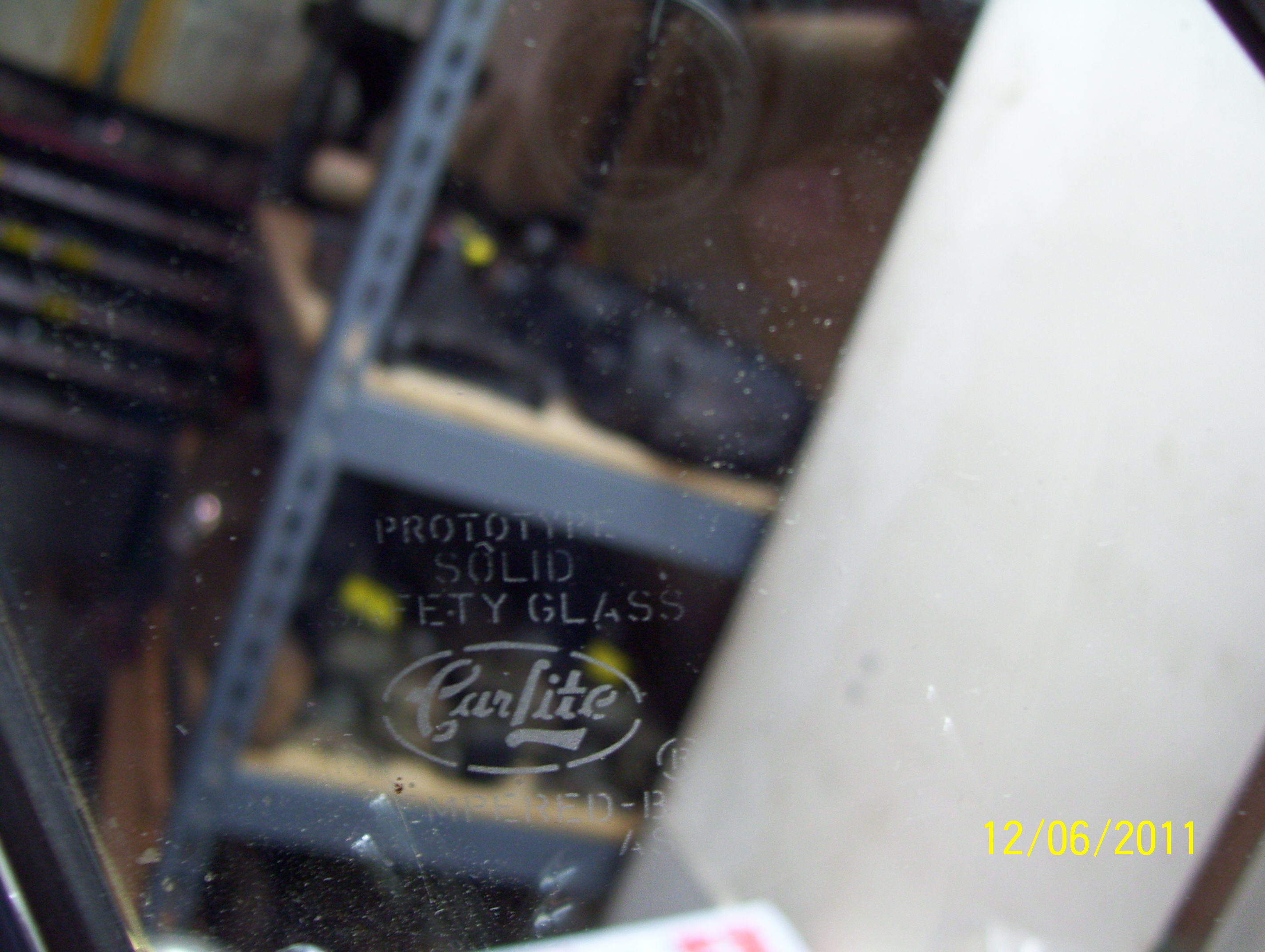 The windshield and side windows were built with "Prototype Solid Safety Glass".