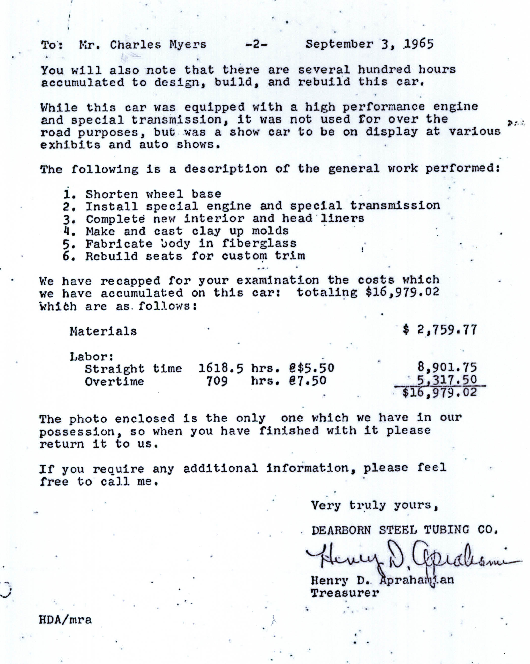 A September 3, 1965 document from Dearborn Steel Tubing documented the transfer of the Mustang from Ford to DST: