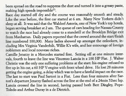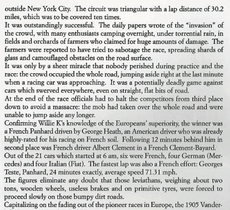 Below are highlights and images (several from the Howard Kroplick Collection) from the chapter on the 1905 Vanderbilt Cup Race.
