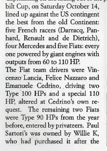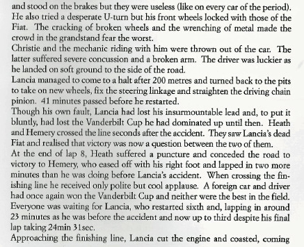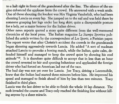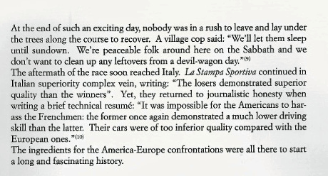 This excellent book documents the endless American-European race challenges including: the 1904 and 1905, 1936 and 1937 Vanderbilt Cup Races and the 1957 and 1958 500 Miglia di Monza races.