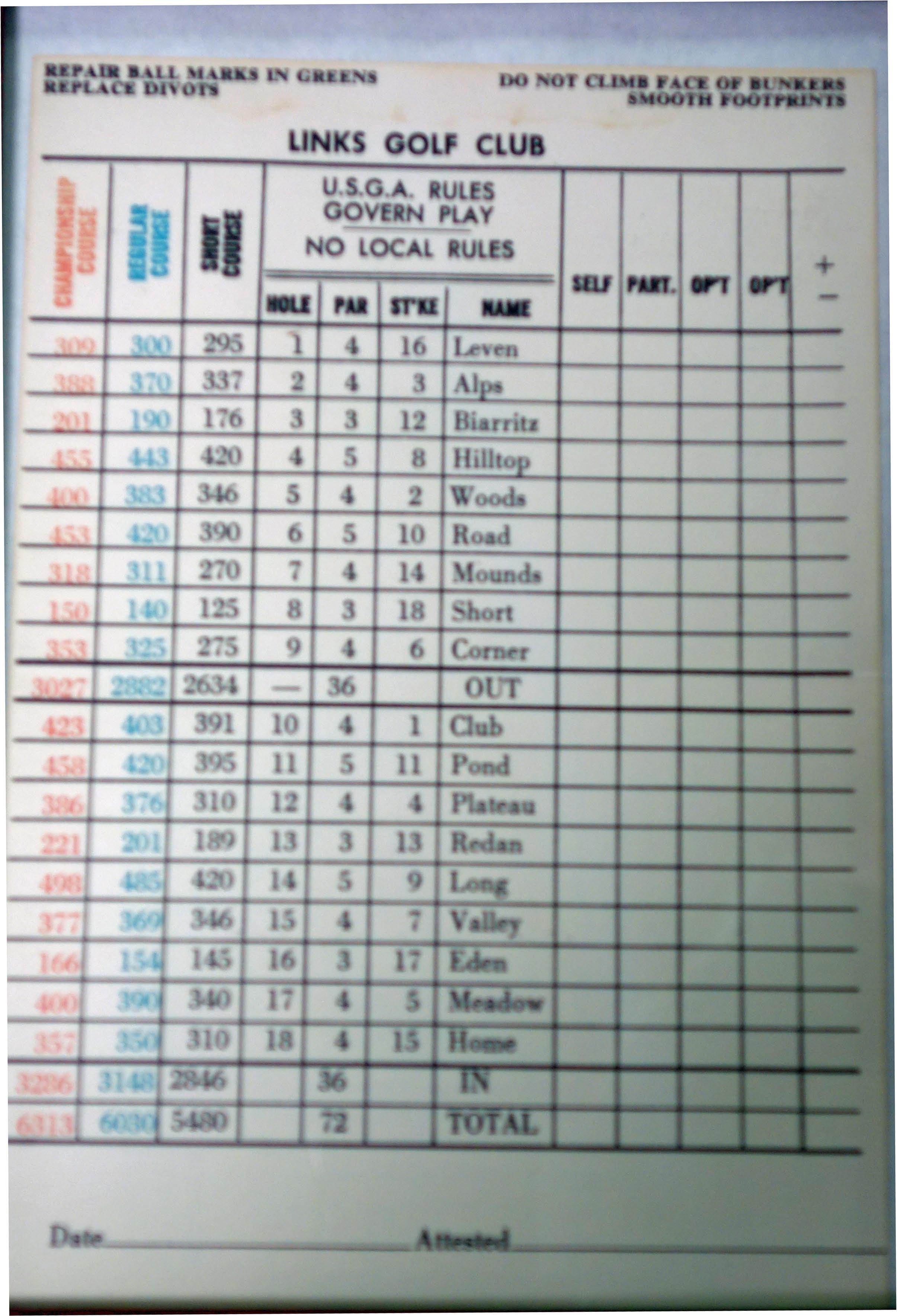An actual scorecard from the club