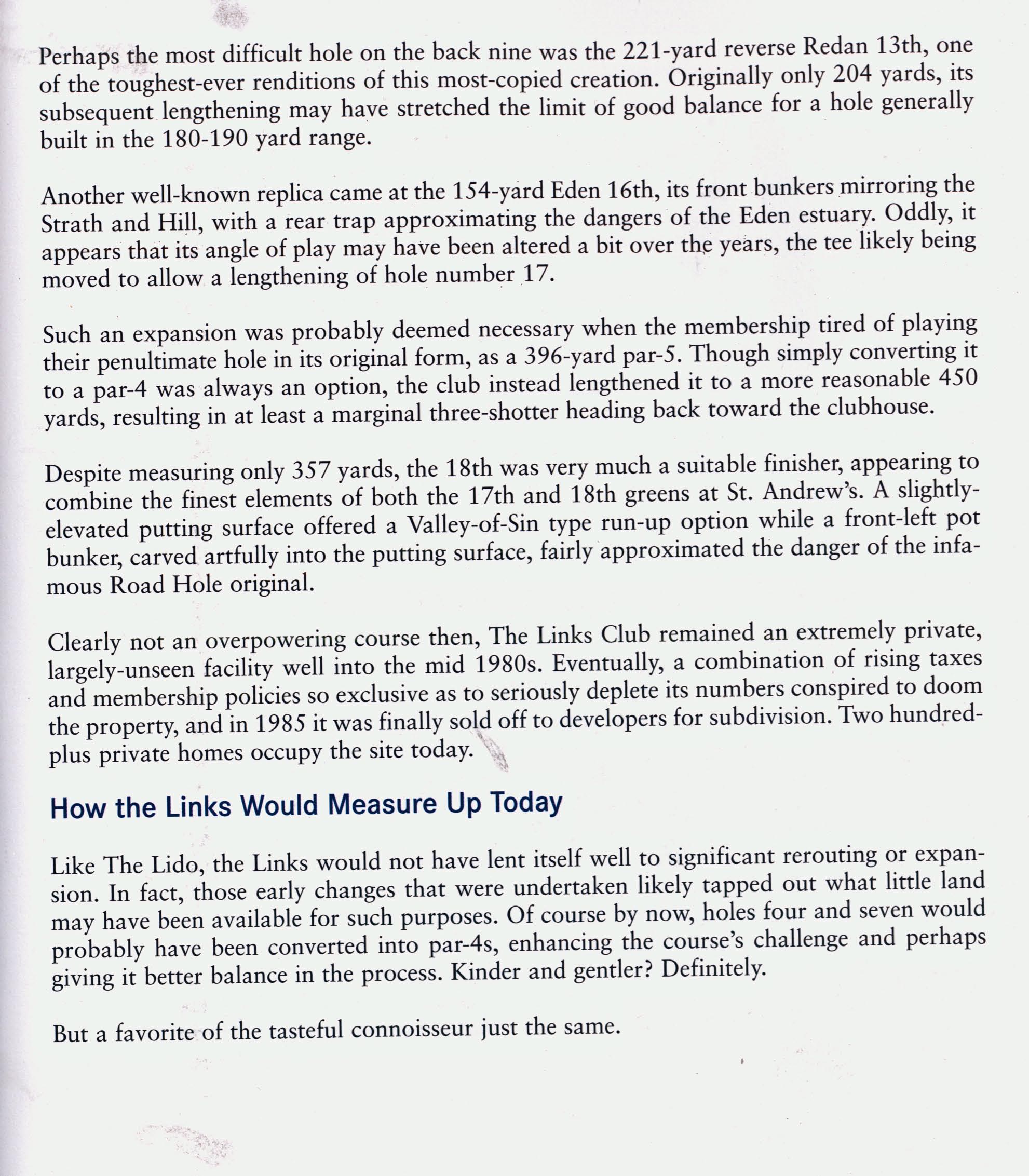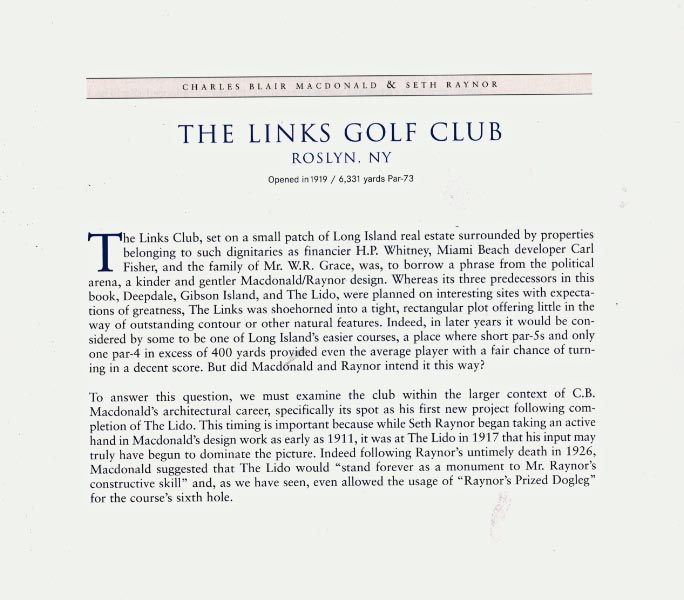 A description of the club as published in the book "The Missing Links- America's Greatest Lost Golf Courses & Holes."