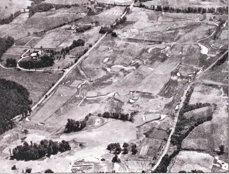 This 1922 aerial shows the golf course. The Long Island Island Motor Parkway is the road on the right.