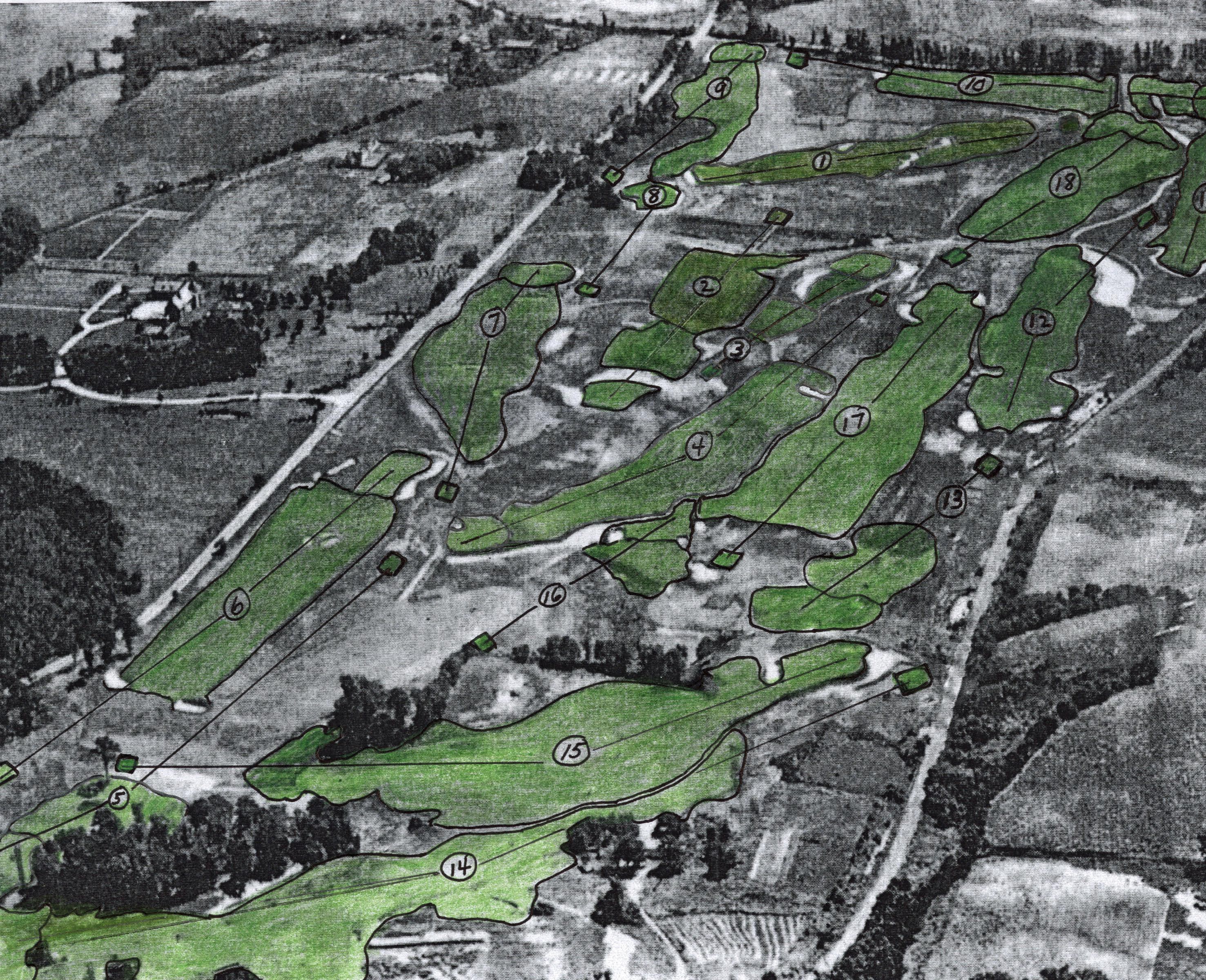 Most of the holes and tees are highlighted here.
